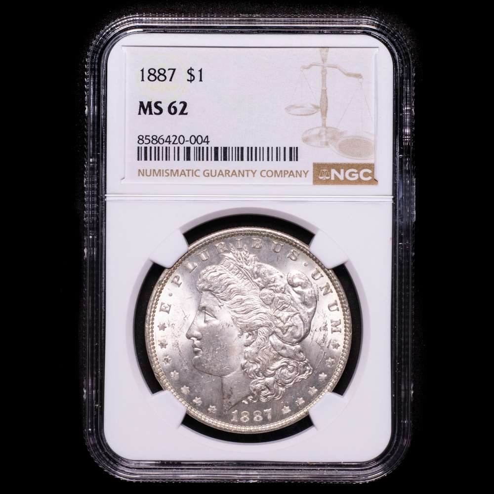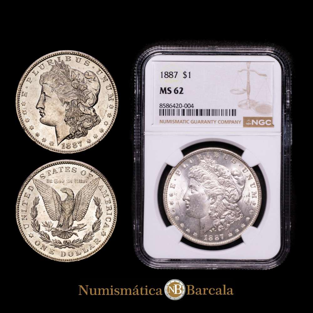 Numismática Barcala > Productos > ESTADOS UNIDOS. 1 dólar. (Ar. 27,00g/38mm)*. 1887. Philadelphia. (Km-110). Encapsulado por NGC MS 62. Bella pátina.