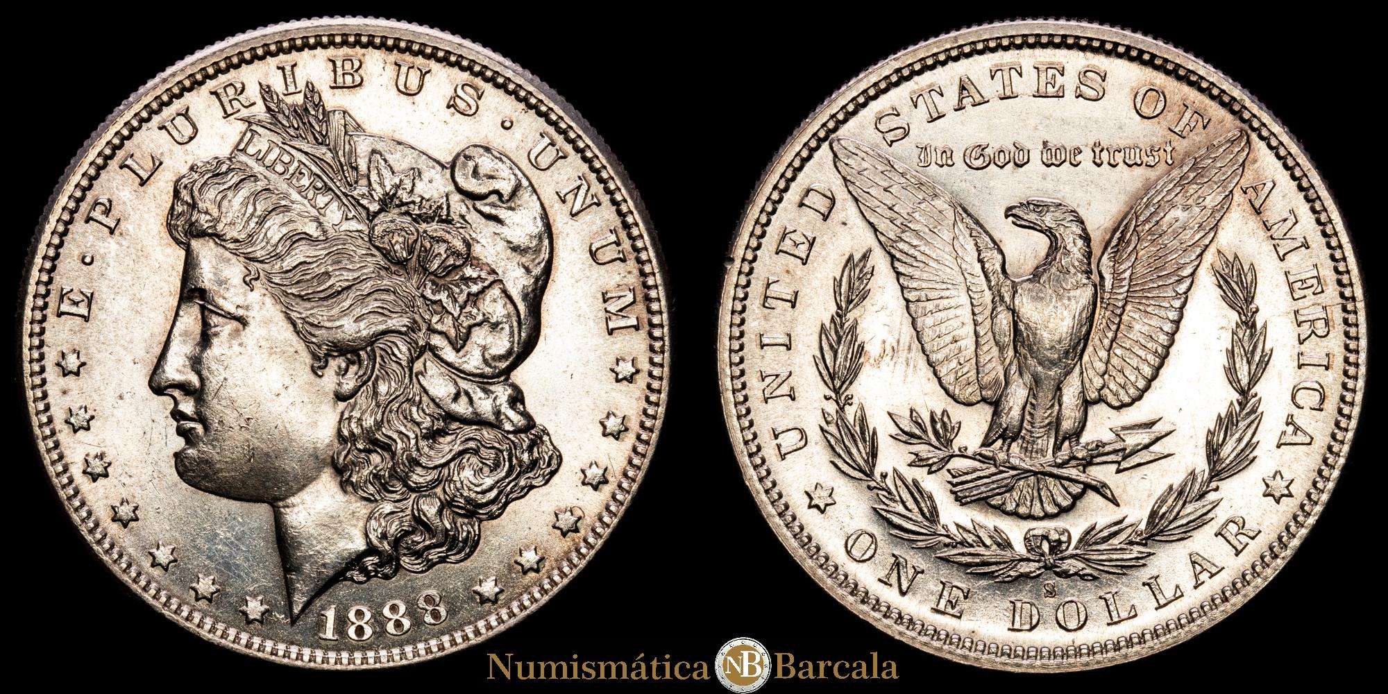 Numismática Barcala > Productos > Estados Unidos. 1 Dollar “Morgan”. 1888-S. SAN FRANCISCO. 26,73 gramos. AR. Tipo Morgan. ESCASA. KM-110. UNC-.