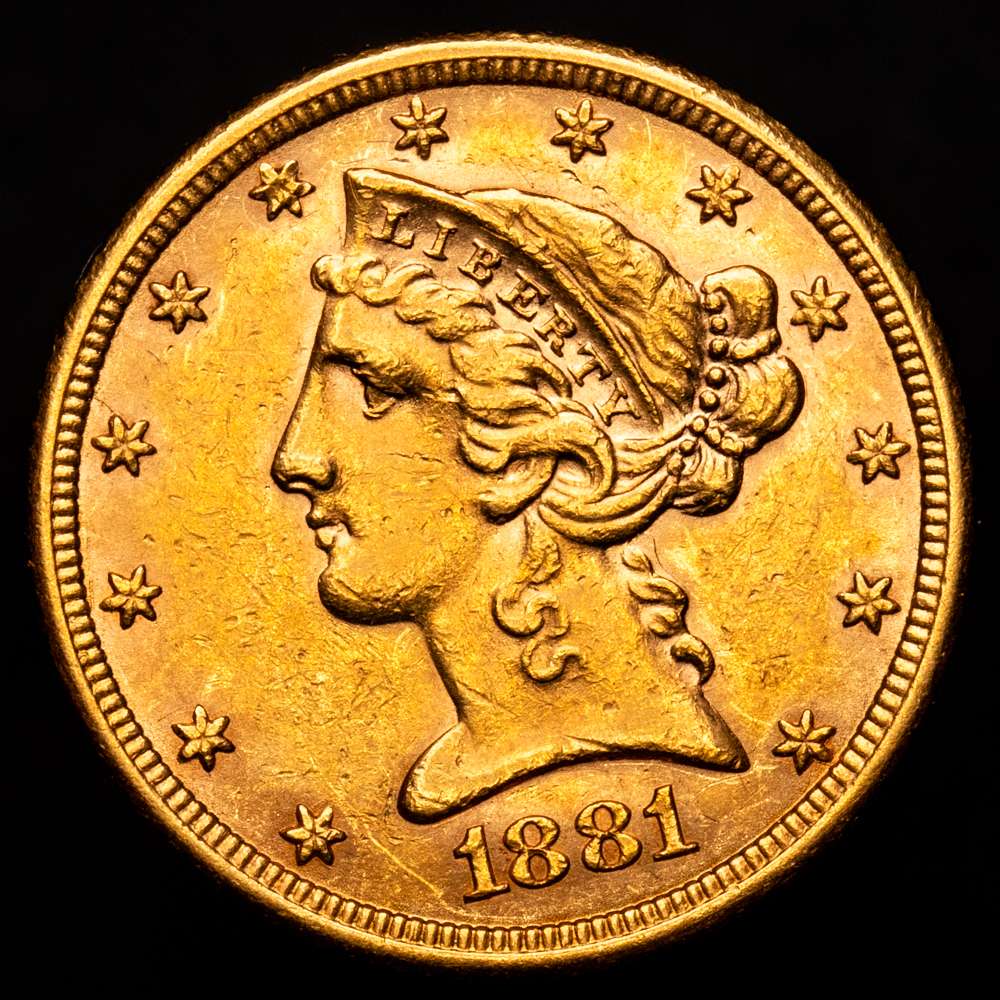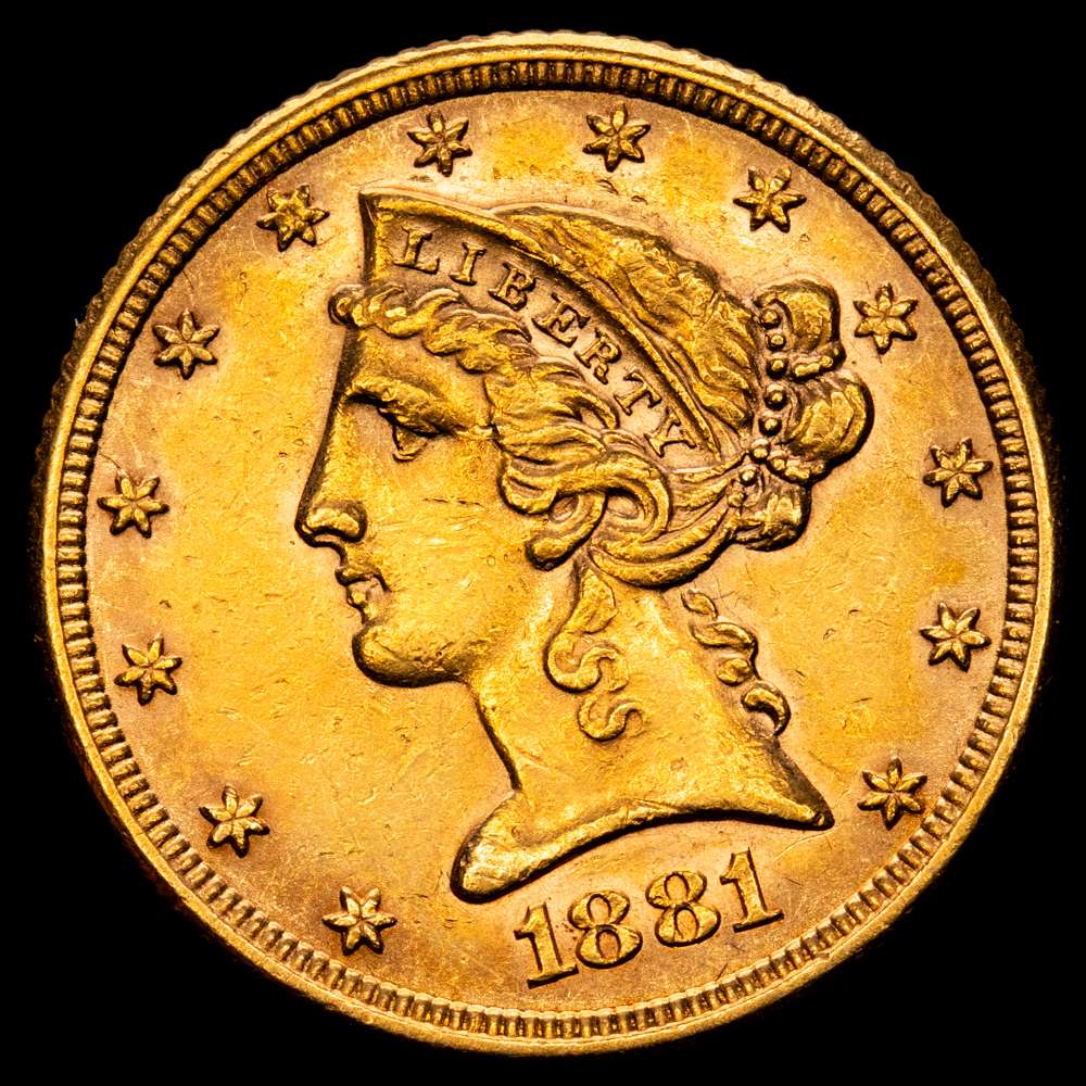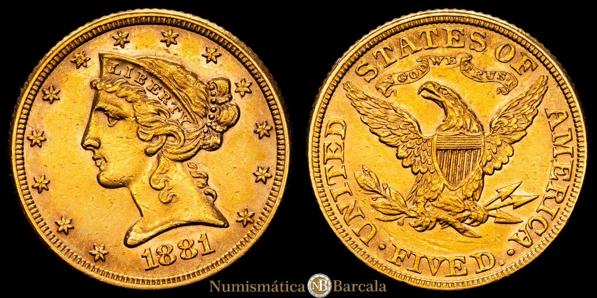 Estados Unidos. 5 dollars. 1881. Philadelphia. (Km-101). (Fried-143). Au. 8,33 g. EBC-.