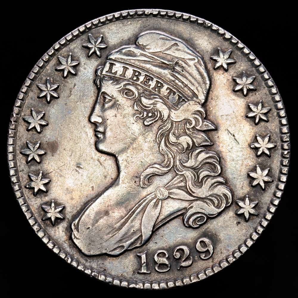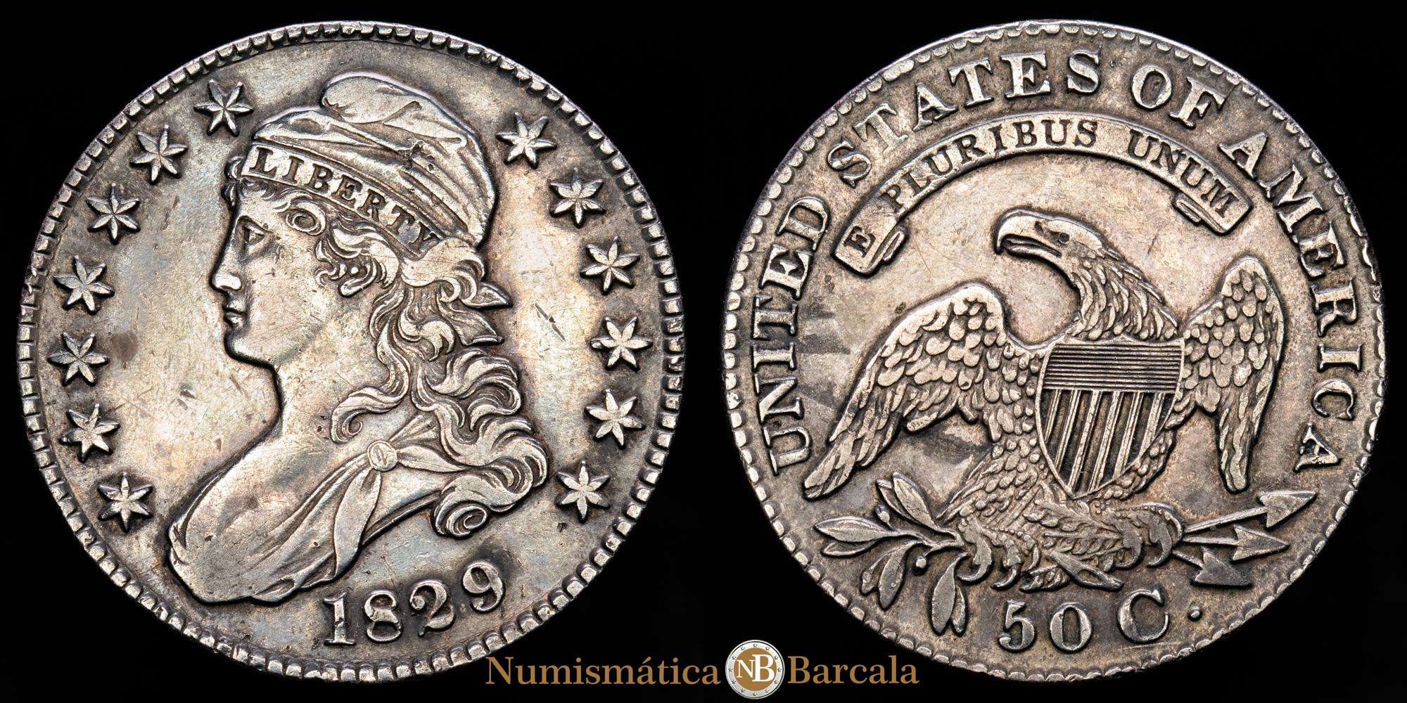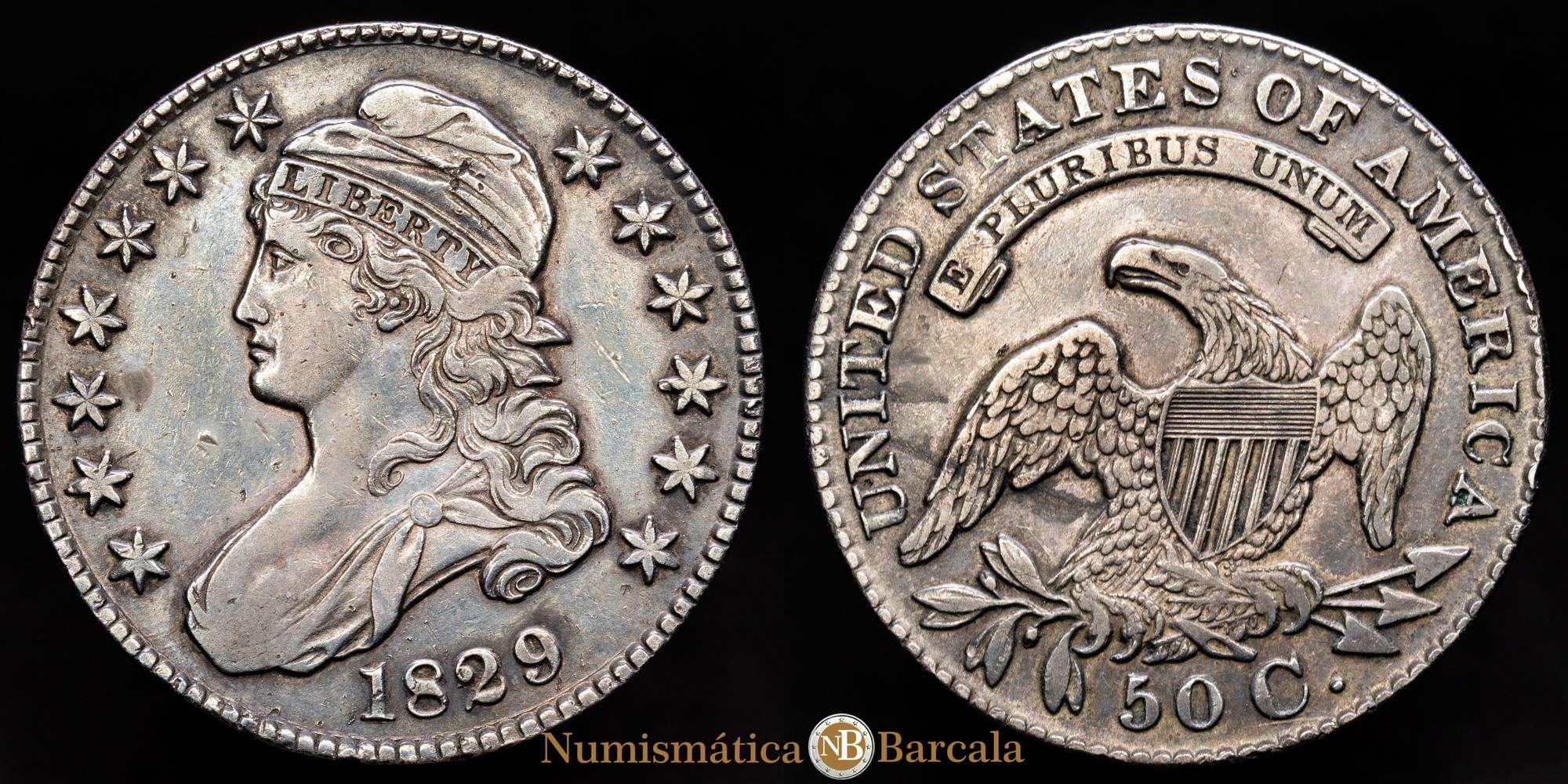 Numismática Barcala > Productos > Estados Unidos de América. 1/2 Dollar. (13,4 g.). 1829. Filadelfia. KM.19/37 – Y.- MBC+. Bonita pátina oscura con tonos irisados.