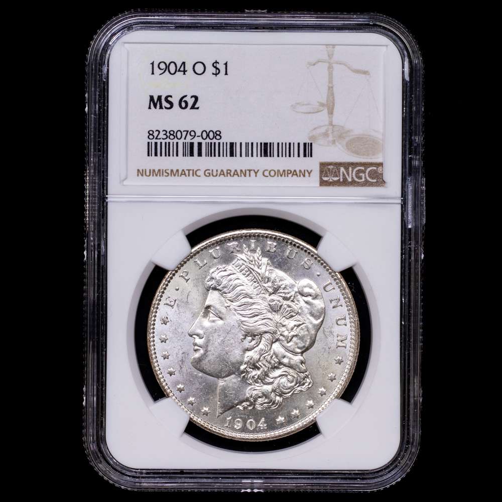 Numismática Barcala > Productos > Estados Unidos. Dólar Morgan. 1 dólar. 1904. Nueva Orleans. O. (Km-110). Ag. Brillo original. Encapsulada por NGC como MS-62.