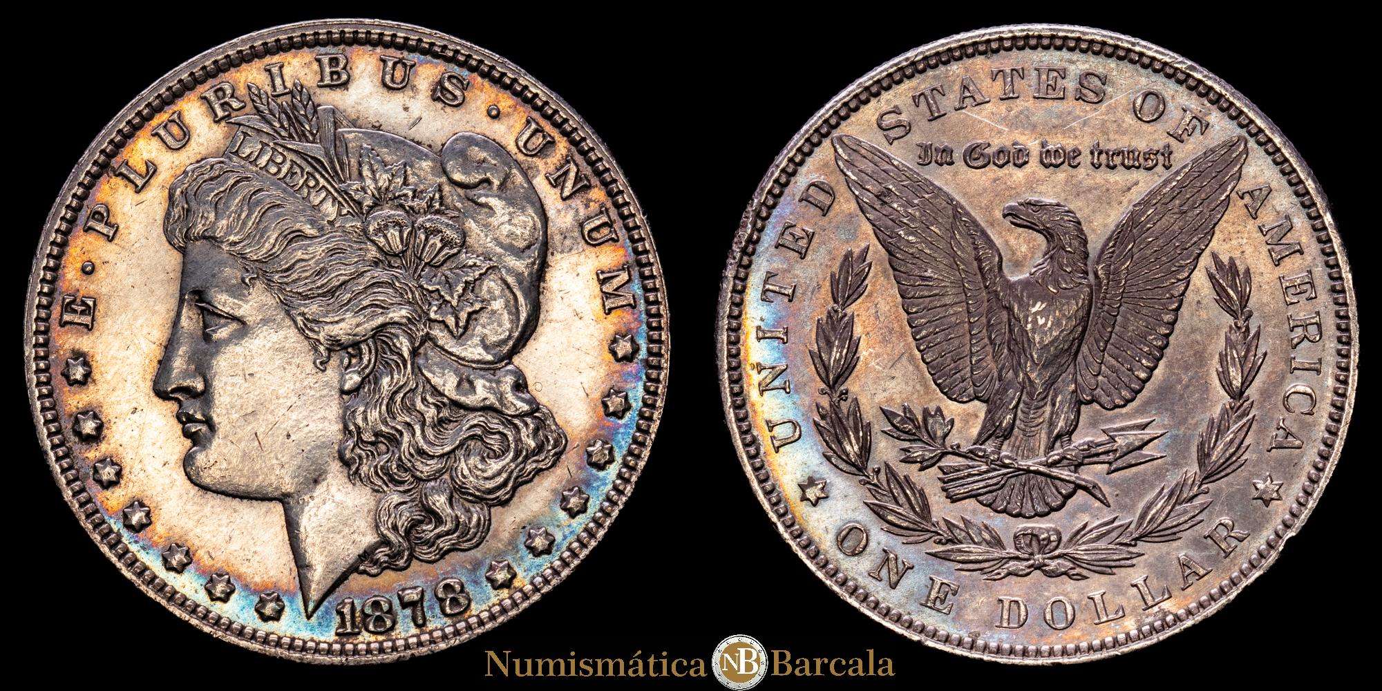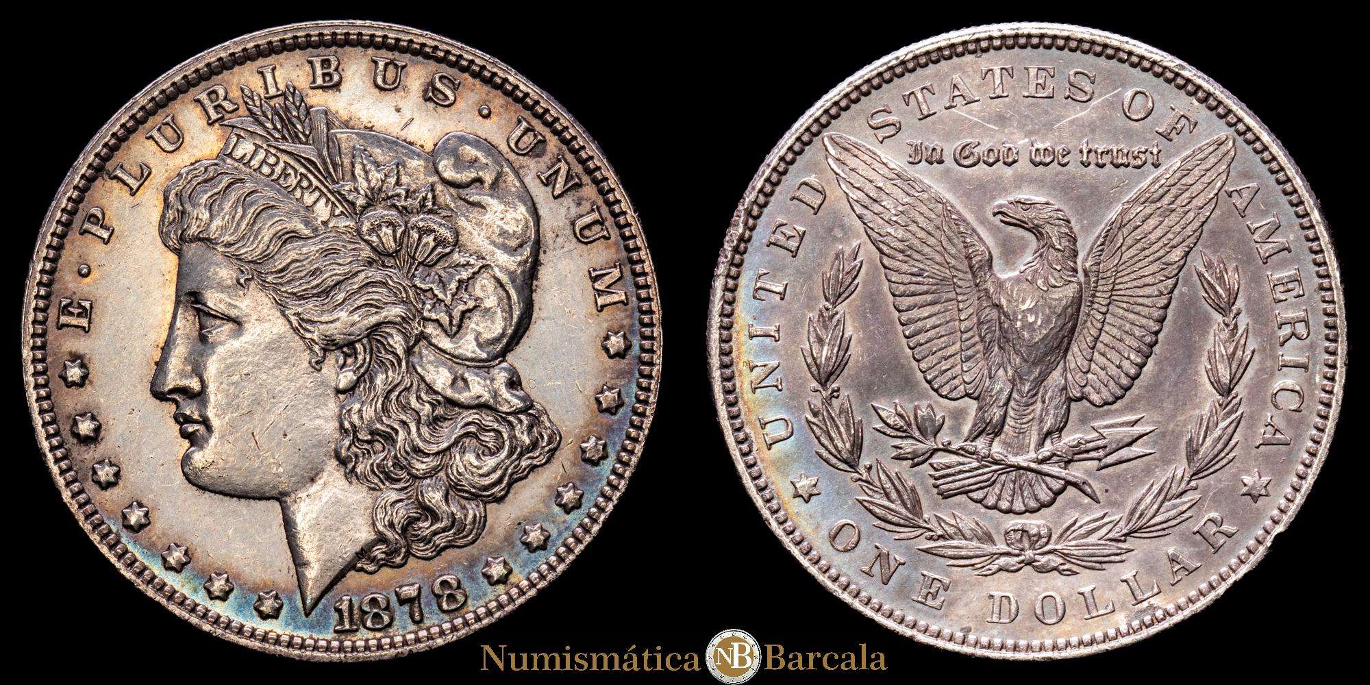 Numismática Barcala > Productos > Estados Unidos. Dólares Morgan. 1 dólar. 1878. Filadelfia. (Km-110). Ag. 26,66 gramos. Bella pátina. EBC+.