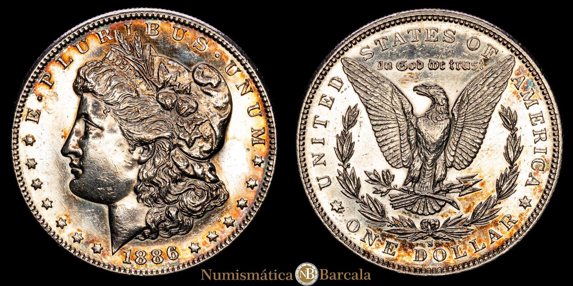 Estados Unidos. Dólares Morgan. 1 dólar. 1886. San Francisco. S. (Km-110). Ag. 26,73 gramos. Limpiada. XF.