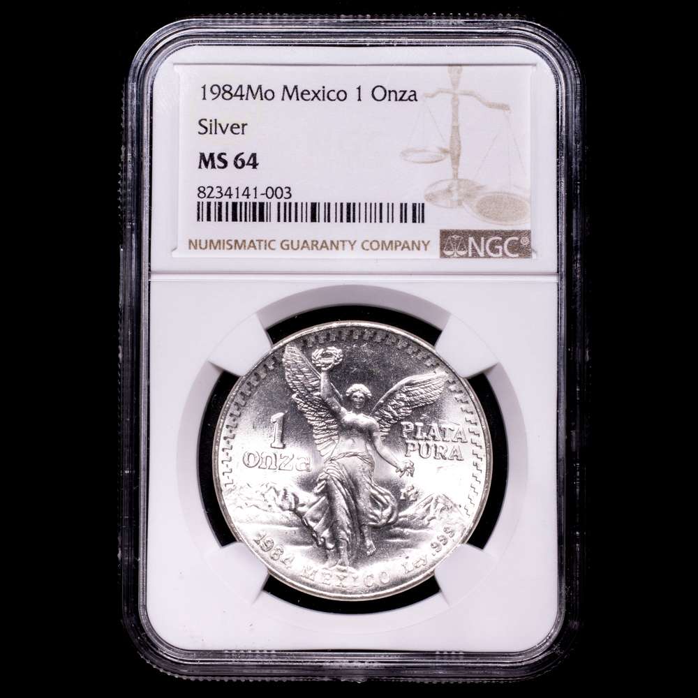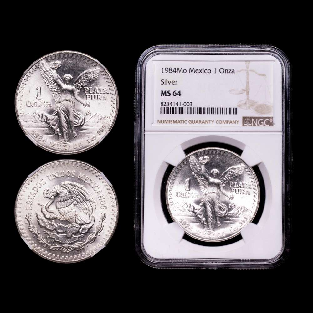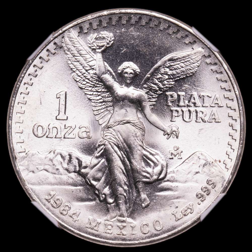 Estados Unidos Mexicanos. 1 Onza. (31,1 g.). México. 1984. KM-494. Encapsulada por NGC como MS 64.