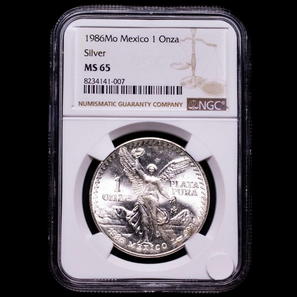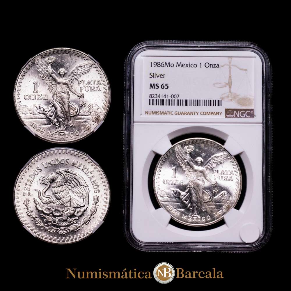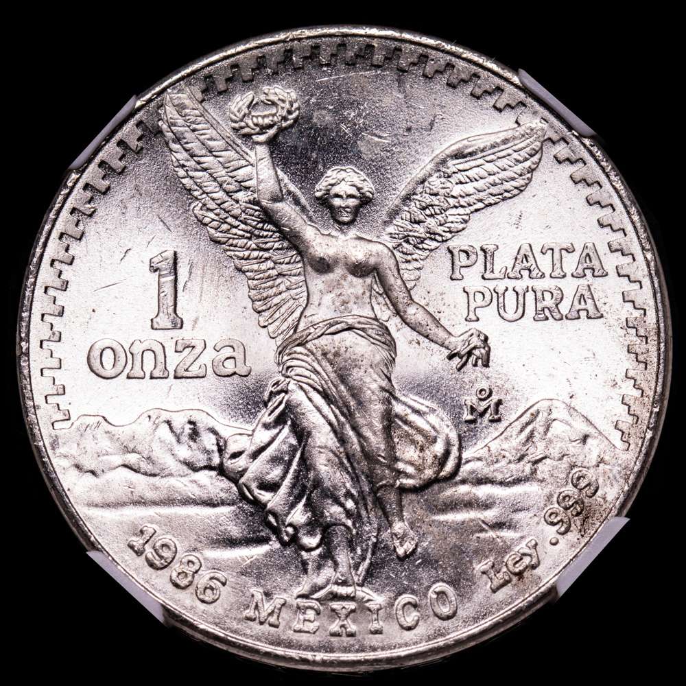 Estados Unidos Mexicanos. 1 Onza. (31,1 g.). México. 1986. KM-494. Encapsulado por NGC como MS 65.