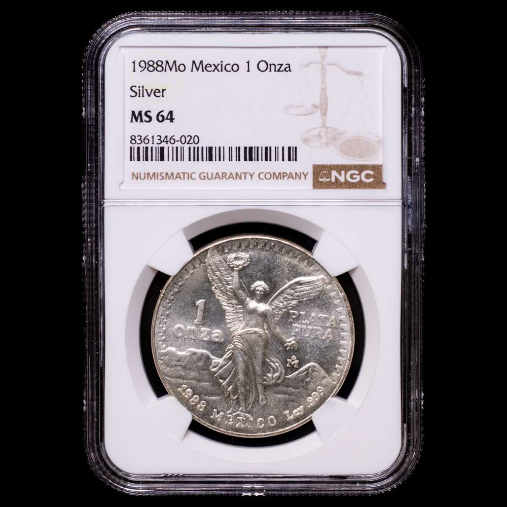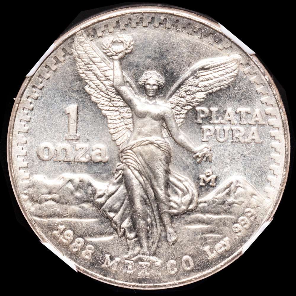 Estados Unidos Mexicanos. 1 Onza. (31,1 g.). México. 1988. KM-613. Encapsulada por NGC como MS64.