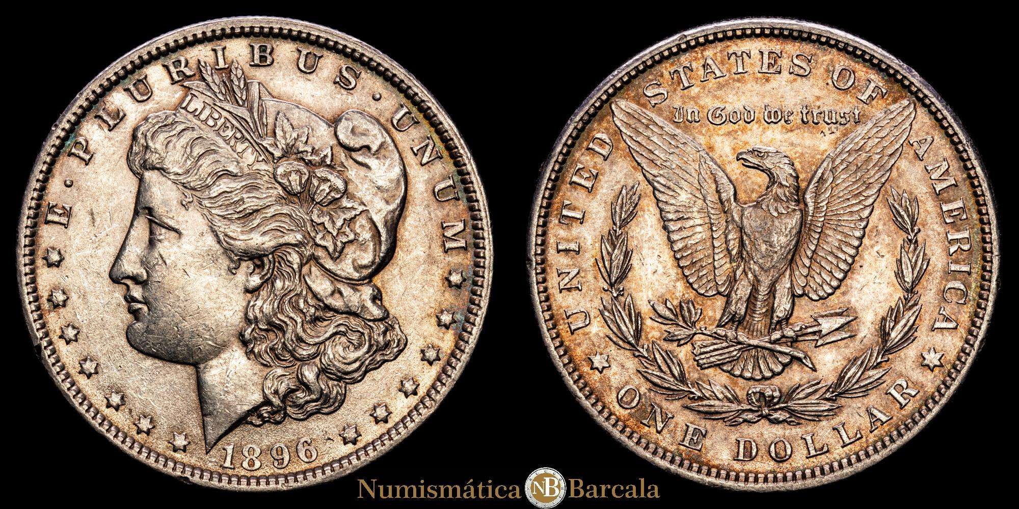 Numismática Barcala > Productos > Estados Unidos. Morgan Dollars. 1 dollar. 1896. Philadelphia. (Km-110). Ag. 26,76 g. EBC. Suave pátina.
