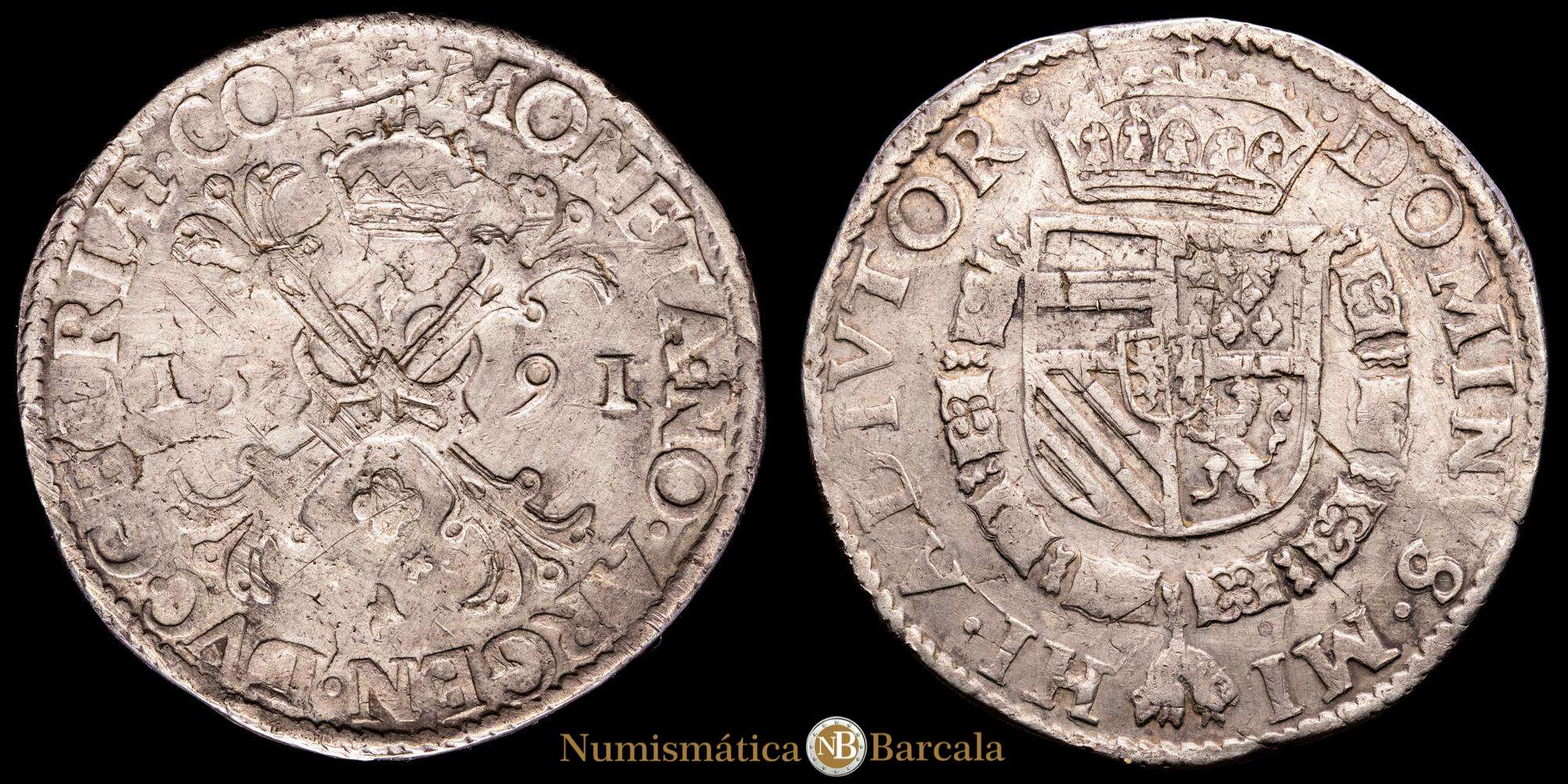 Felipe II. 1 Escudo. (28,53 g.). Nimega. 1591. Vicenti-1362. MBC. 40 mm. Raro