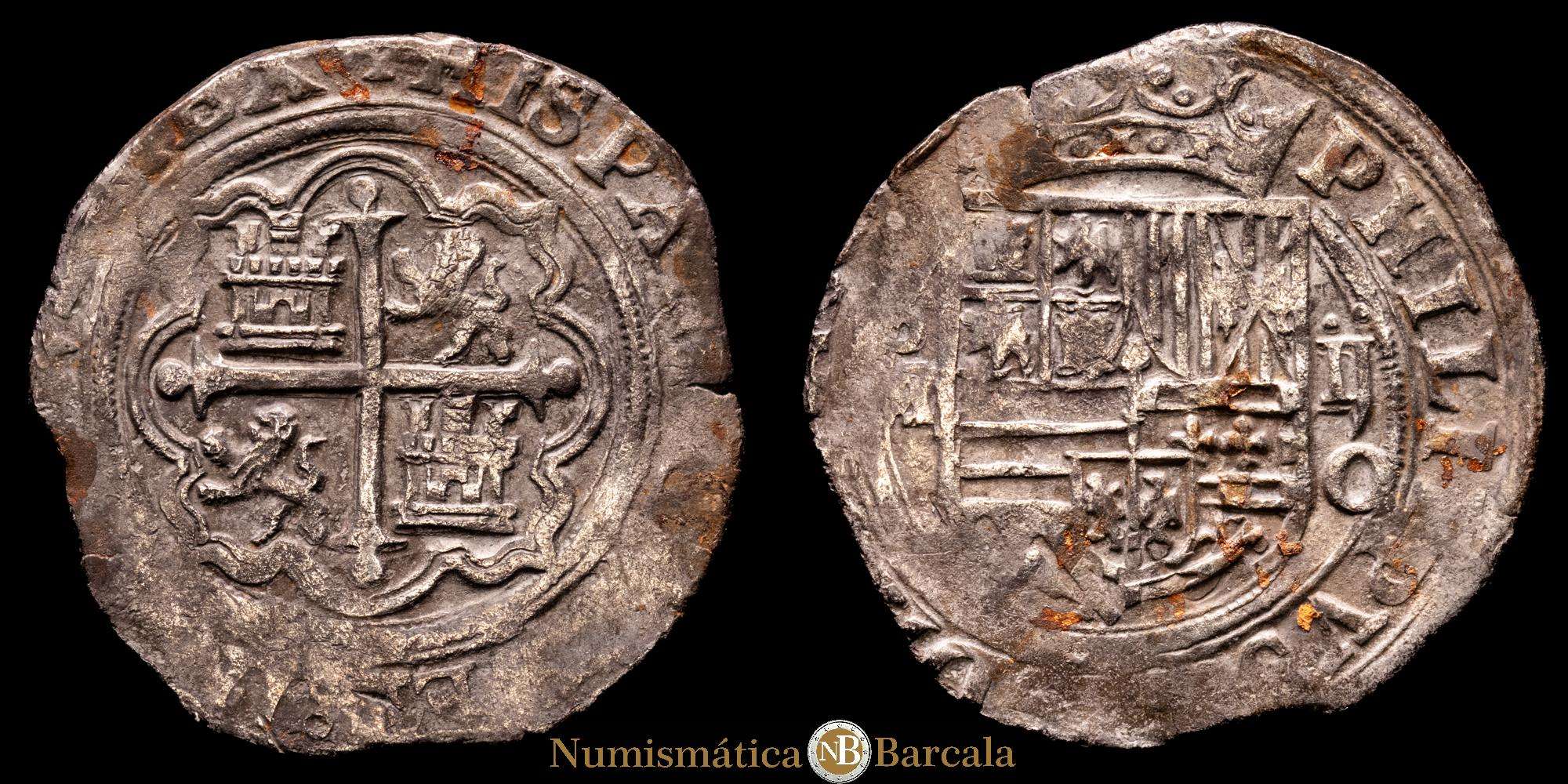 Numismática Barcala > Productos > Felipe II (1556-1598). 2 reales. ND. (6,71 g.). México. O. (1572-1589). CAL-355. Preciosa pátina. VF+.