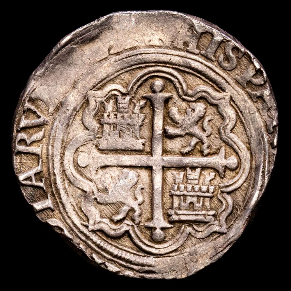 Felipe II (1556-1598). 2 reales. Sevilla. Cal-(407-411)? Tipo 137. Ag. 6,72 g. S/II/d cuadrada a izquierda. XF.