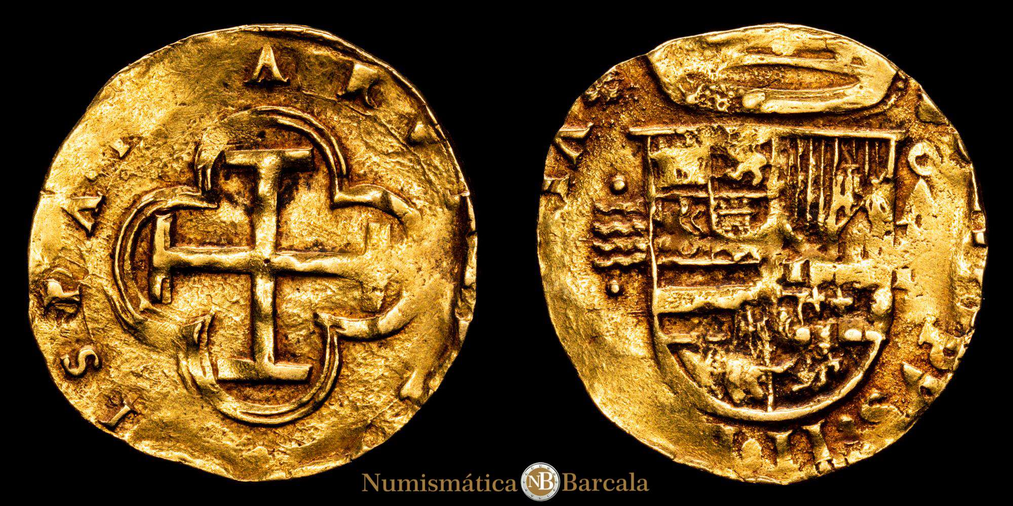Numismática Barcala > Productos > Felipe II. 2 Escudos. (6,68 g.). Valladolid. (1590-1597). Ensayador A. Aureo y Calicó-877. MBC+. Muy rara