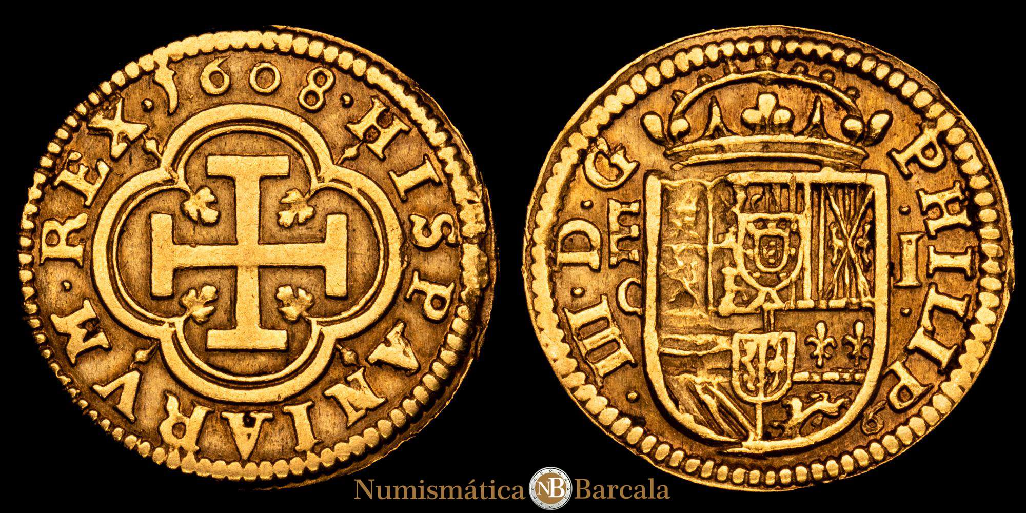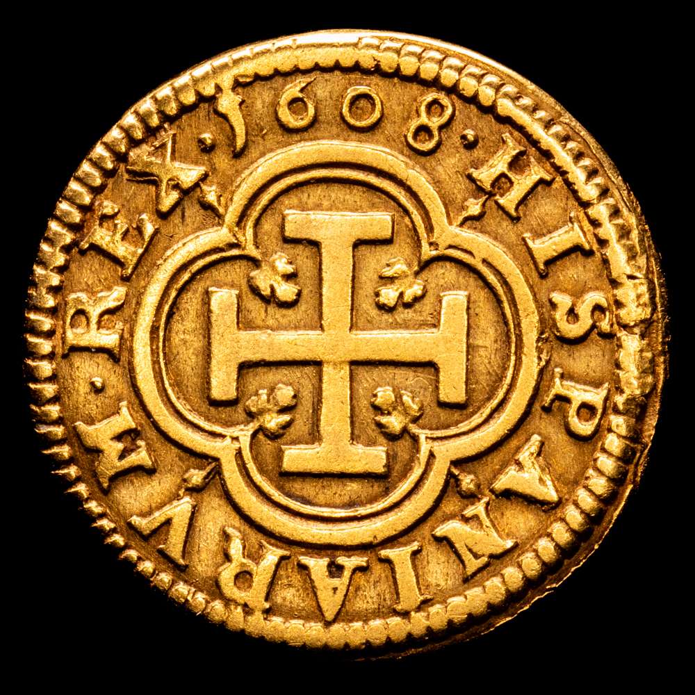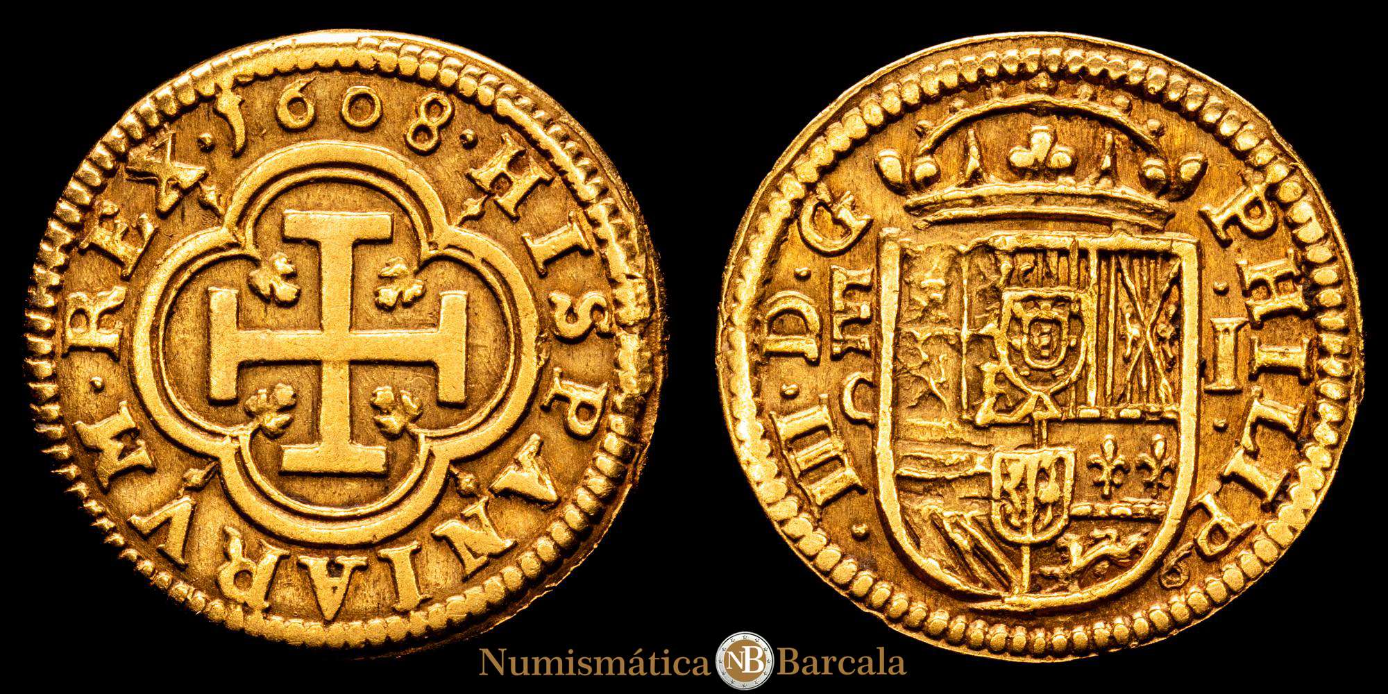 Felipe III (1598-1621). 1 escudo. 1608. Segovia. C. (Cal-1016). Au. 3,22 g. Bonito color. Rara. Atractivo ejemplar.