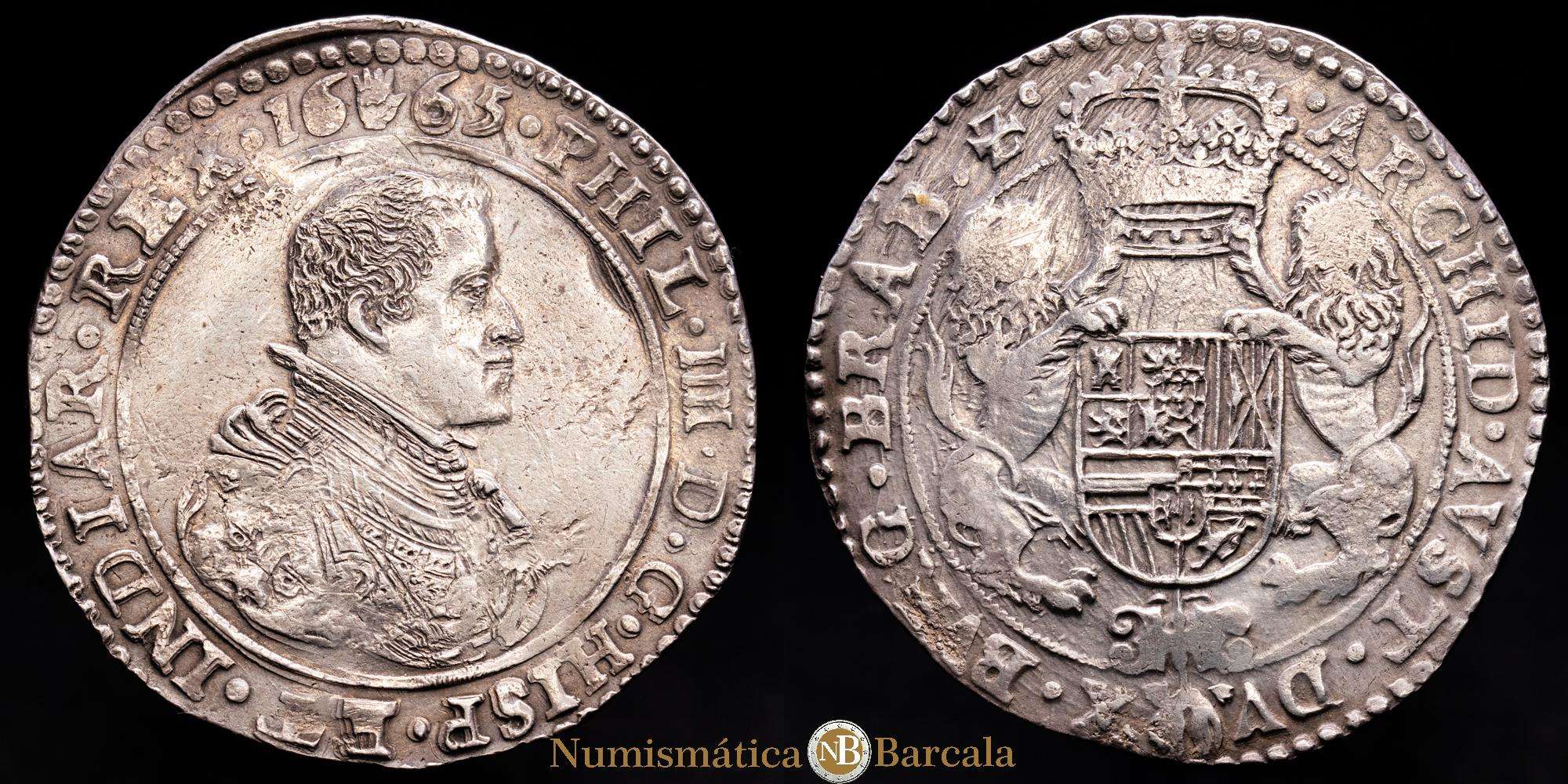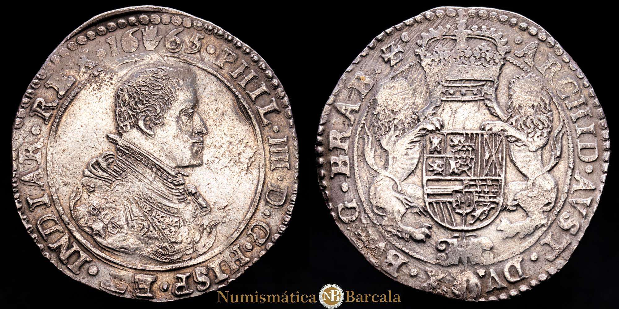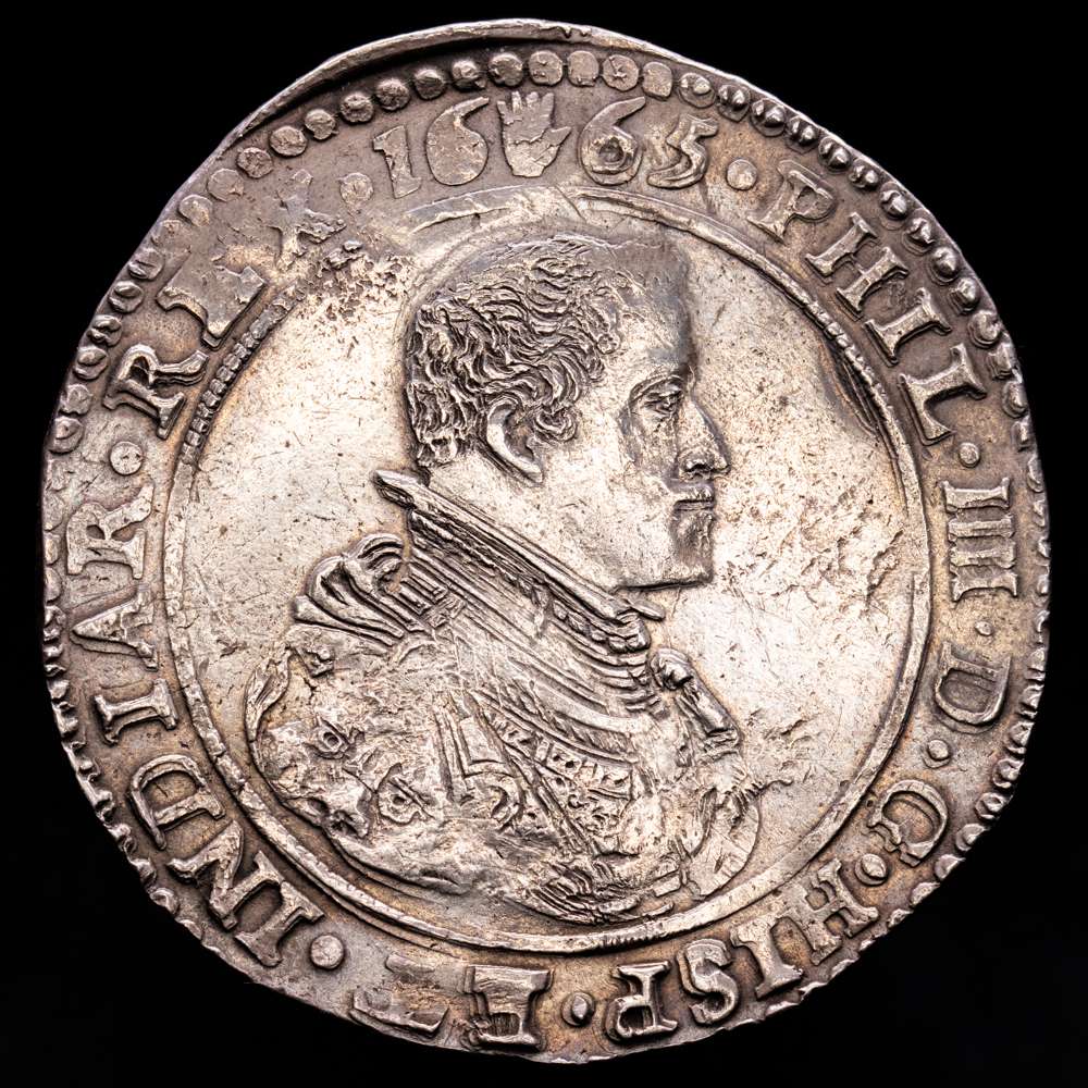 Felipe IV (1621-1665). 1 ducatón. 1665. Casa de la Moneda de Amberes . (Tauler-2926). (Vti-1253). (Vanhoudt-642.AN). Ag. 32,46 gramos. Buena acuñación central, con mayor parte de los detalles visibles, con algo de ligera pátina. EBC-.