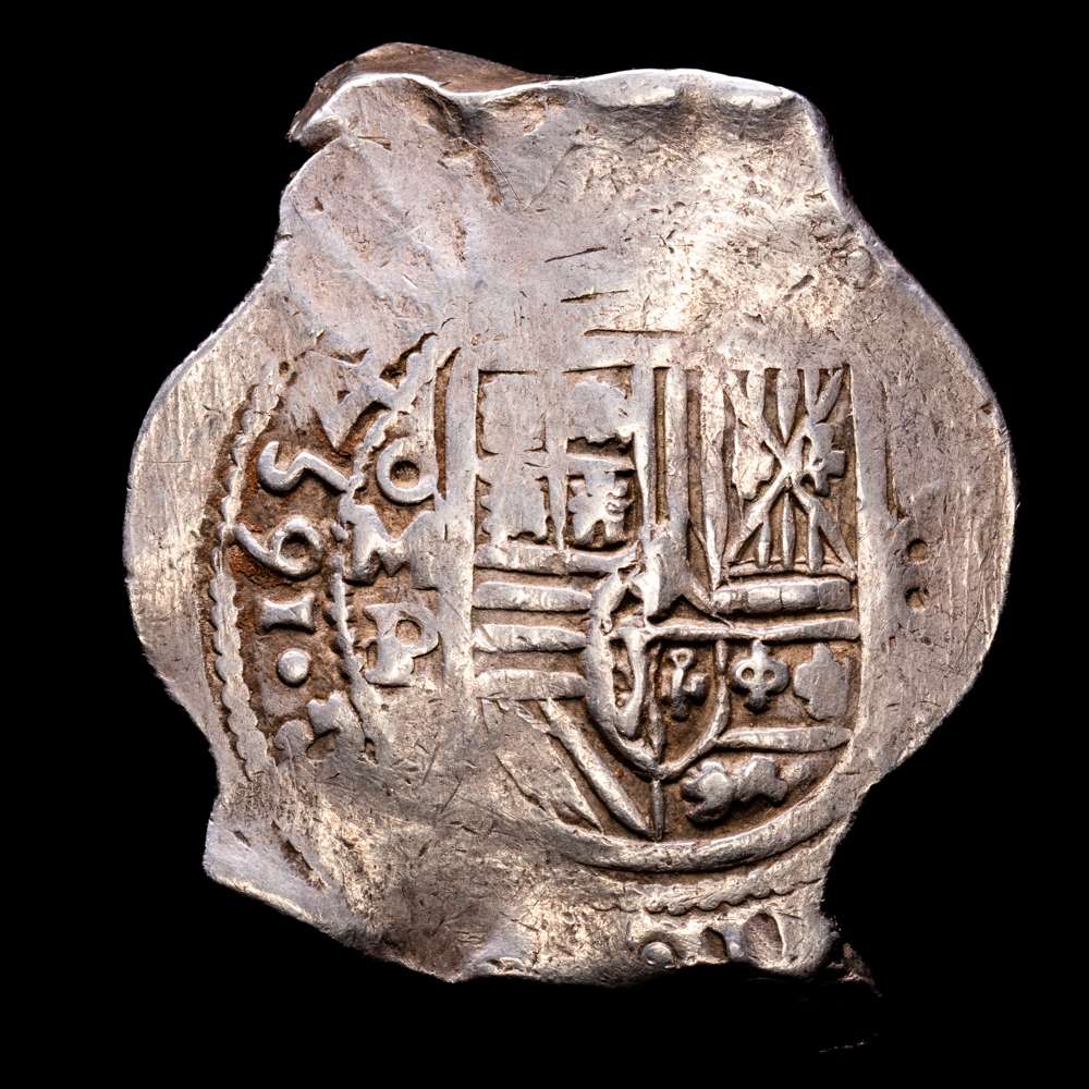 Cartagena, Colombia, cob 8 reales, Felipe IV, ensayador E debajo de la marca de ceca RN a la izquierda (1626-30), rara. Restrepo-M45.3; S-C3; Cal-Type 298; KM-3.4. 25,92 gramos.MUY RARA!!