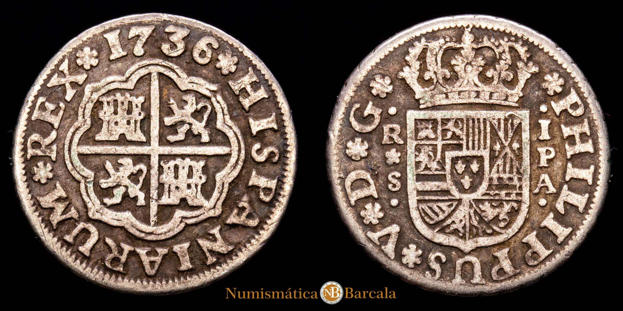 Felipe V. 1 Real. (2,74 g.). Sevilla. 1736. Ensayador P·A. Aureo y Calico-993. MBC.
