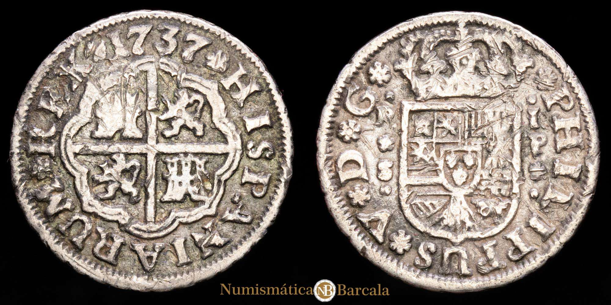 Numismática Barcala > Productos > Felipe V. 1 Real. (2,82g.). Sevilla. 1737. Ensayador P. AC-660. MBC-.