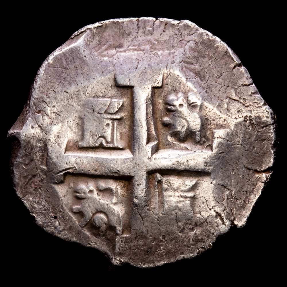 Cartagena, Colombia, cob 8 reales, Felipe IV, ensayador E debajo de la marca de ceca RN a la izquierda (1626-30), rara. Restrepo-M45.3; S-C3; Cal-Type 298; KM-3.4. 25,92 gramos.MUY RARA!!