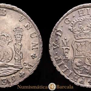 Felipe V (1700-1746). 8 reales. 1735. México. MF. (Cal-1443). Ag. 26,92 gramos. Bella pátina gris plomo.