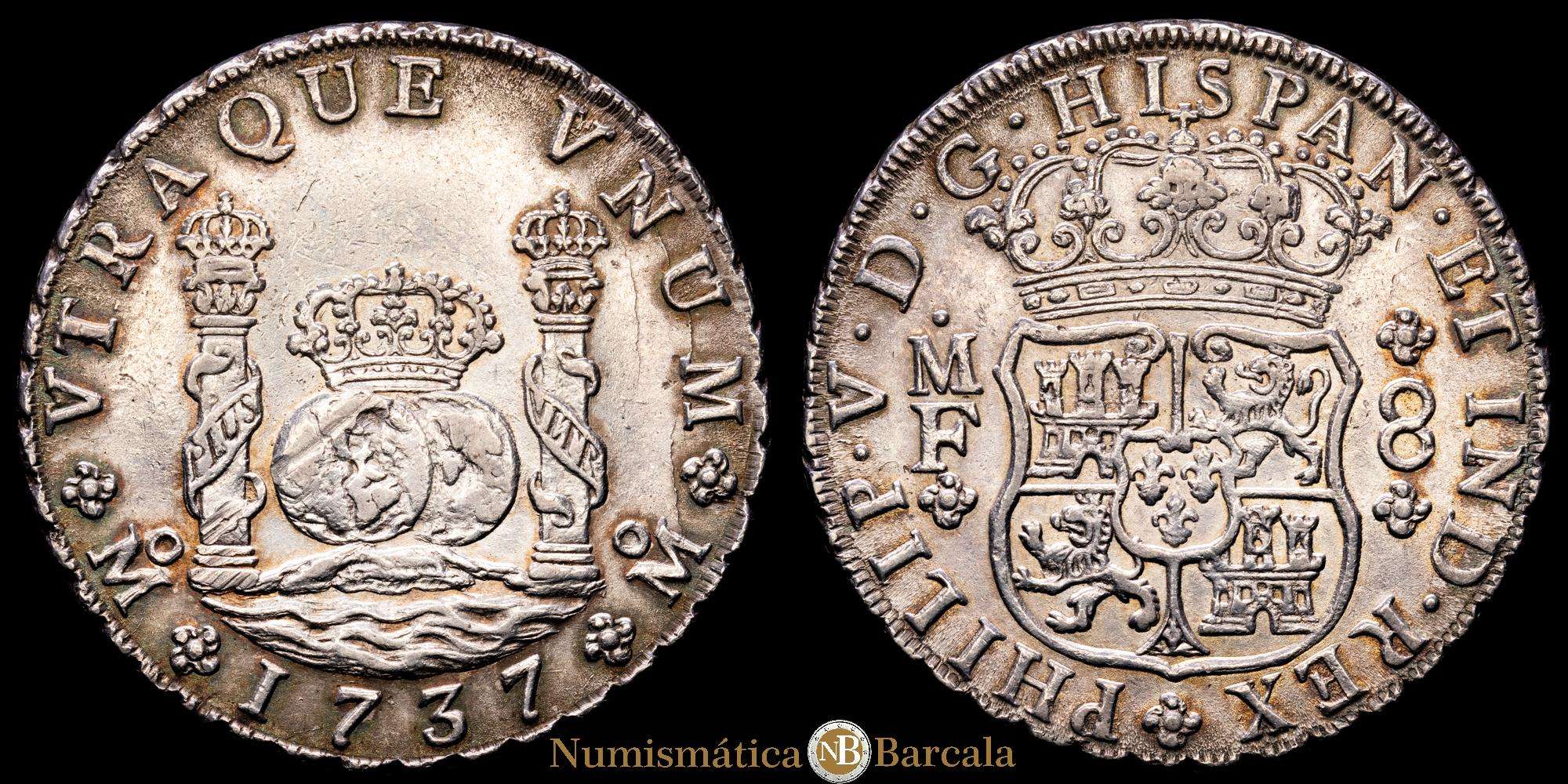 Felipe V (1700-1746). 8 Reales. 1737. MÉXICO. M.F. 26,97 grs. Columnario. AC-1446; Cal-781. EBC.