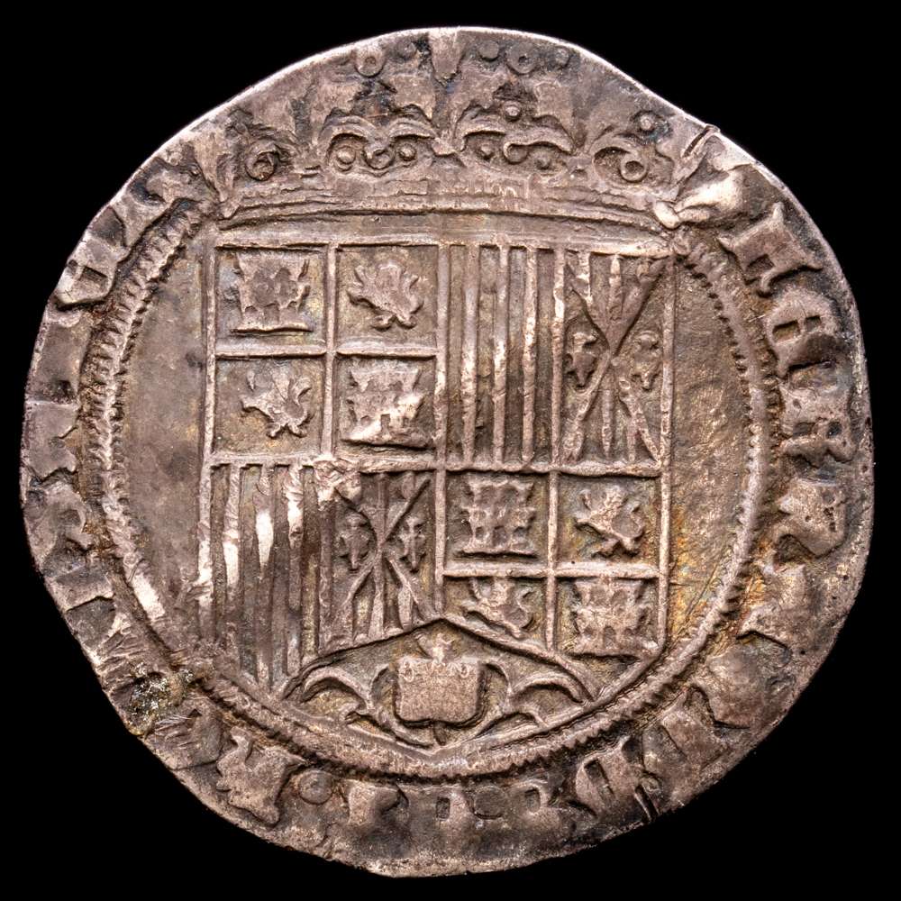Numismática Barcala > Productos > Fernando e Isabel (1474-1504). 1 real. Burgos. (Cal-301). (Lf-F1.4.2.2). (venera). Ag. 3,31 g. Venera en la leyenda del reverso. MBC.