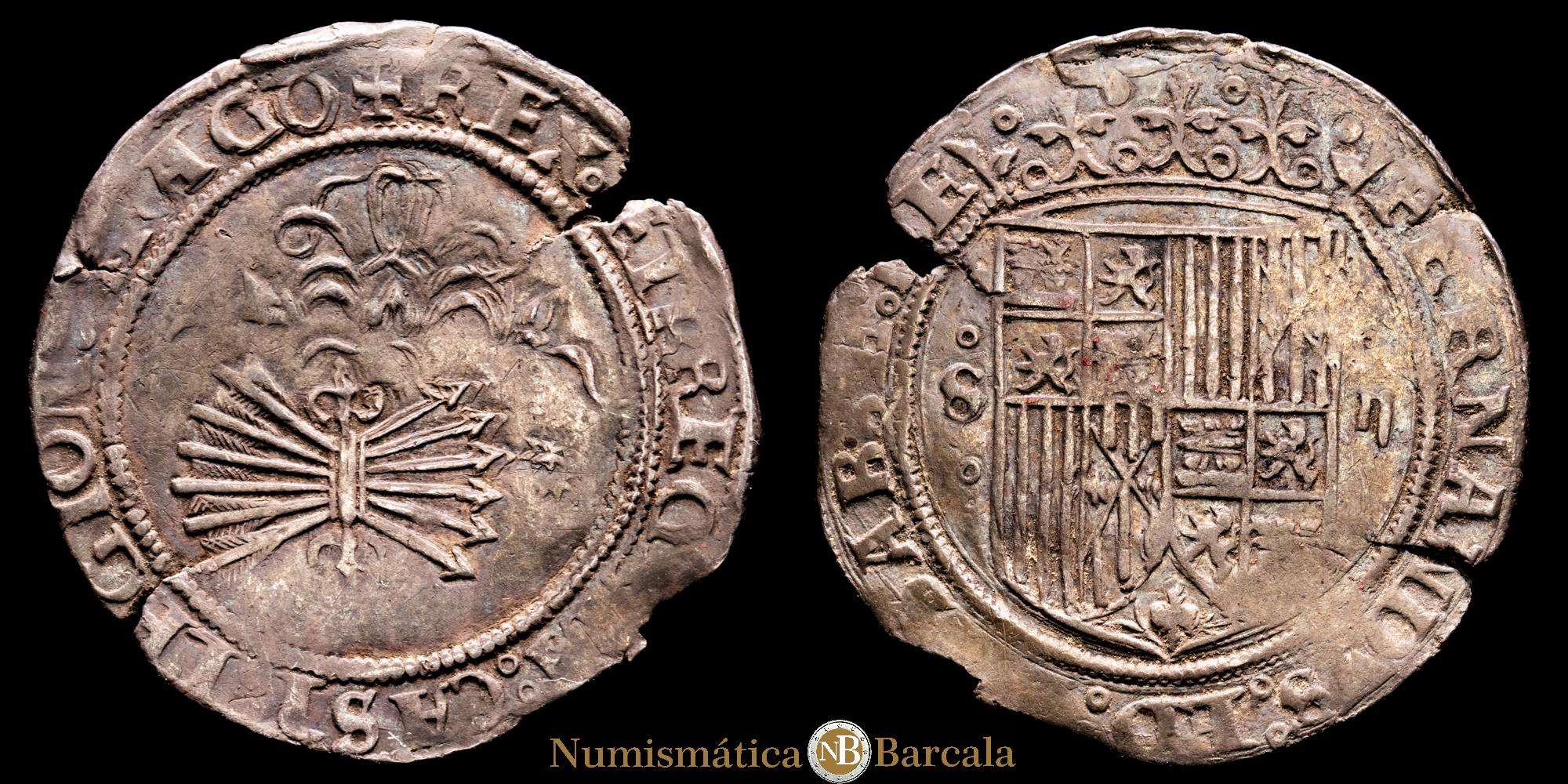 Numismática Barcala > Productos > Fernando e Isabel (1474-1504). 2 reales. Sevilla. (Lf-G6.4.11). Ag. 6,55 g. Ligero tono. MBC+. Variedad poco común.