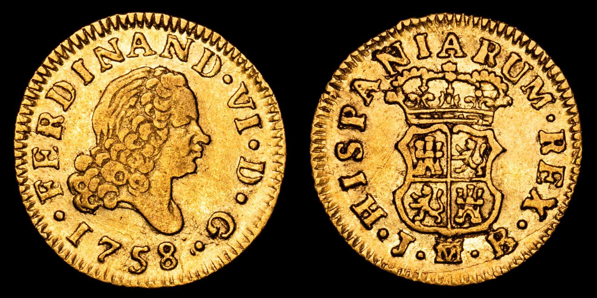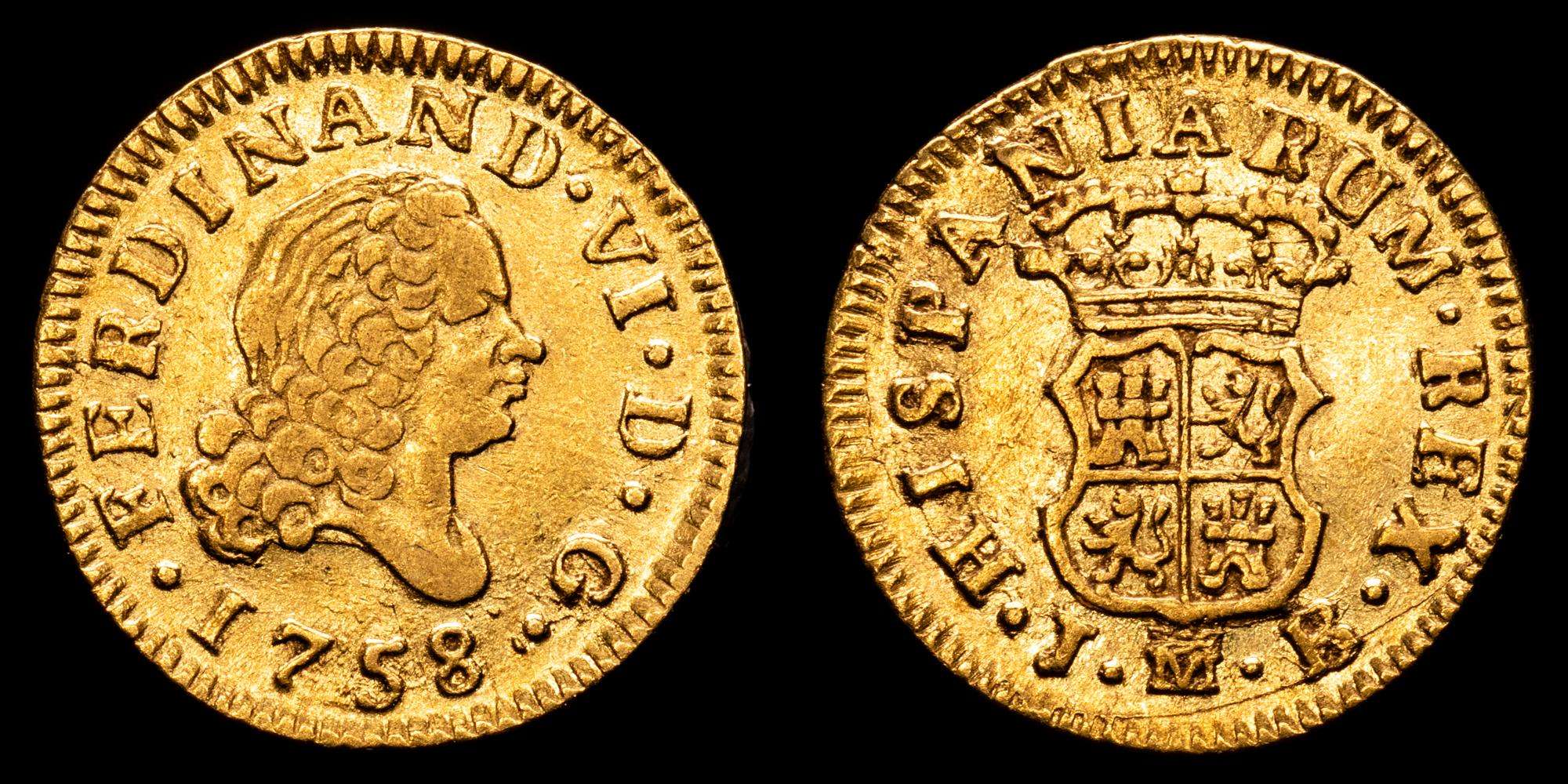 Fernando VI, 1/2 Escudo. 1758. MADRID. JB (1,72grs). Restos de brillo originales. AC-564. MBC+.