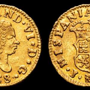Numismática Barcala > Productos > Fernando VI. 1/2 Escudo. (1,78 g.). Madrid. 1758. J·B. CAL-564. EBC-.