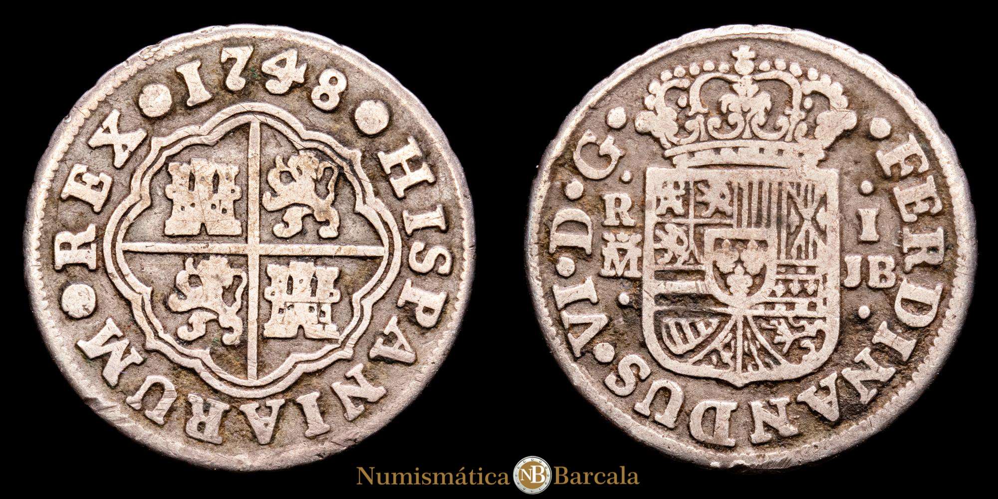 Fernando VI. 1 Real. (2,57 g.). Madrid. 1748. Ensayadores J·B. Aureo y Calico-172. MBC-.