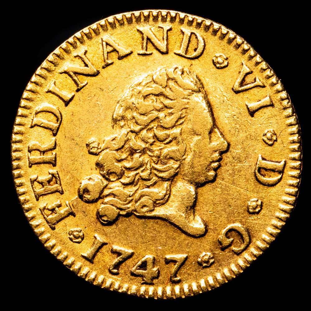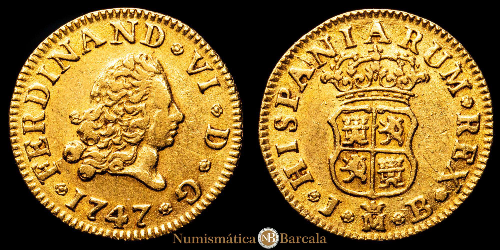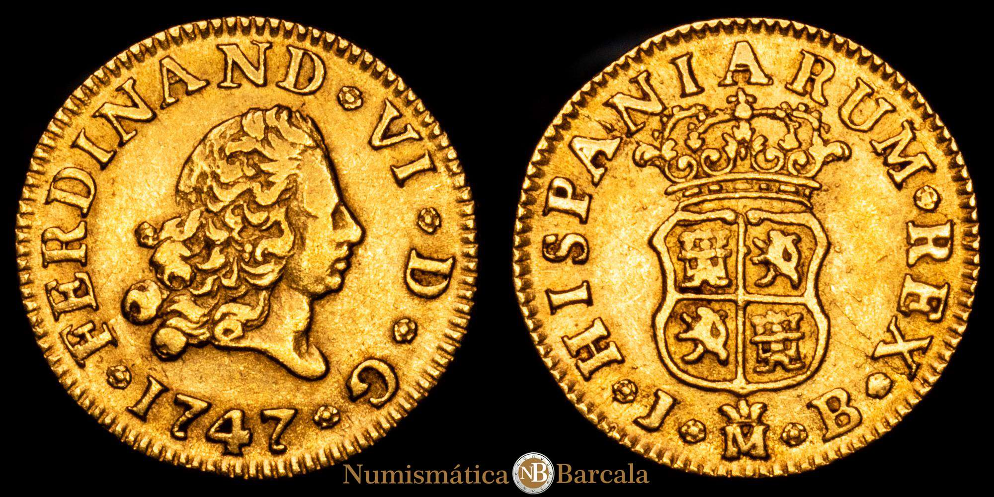 Numismática Barcala > Productos > Fernando VI. (1746-1759). 1/2 Escudo. (1,78 g.). Madrid. 1747. J·B. (AC 548). MBC+.