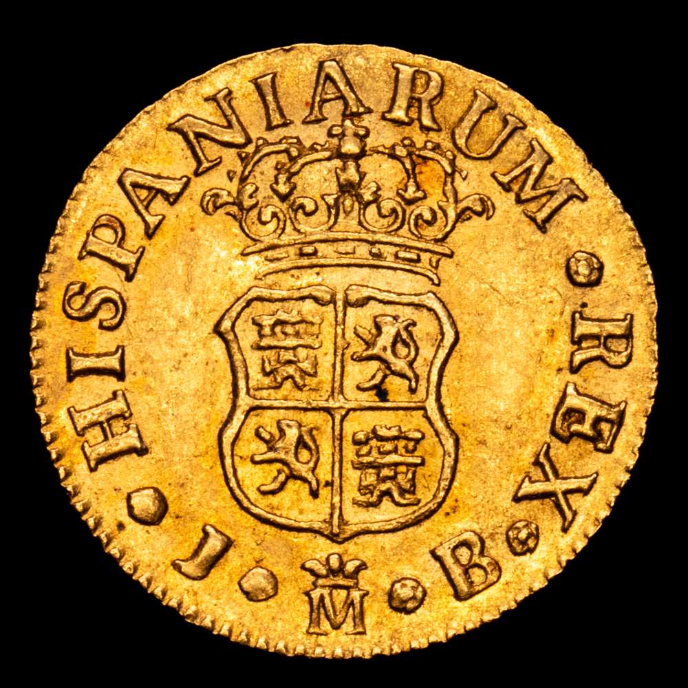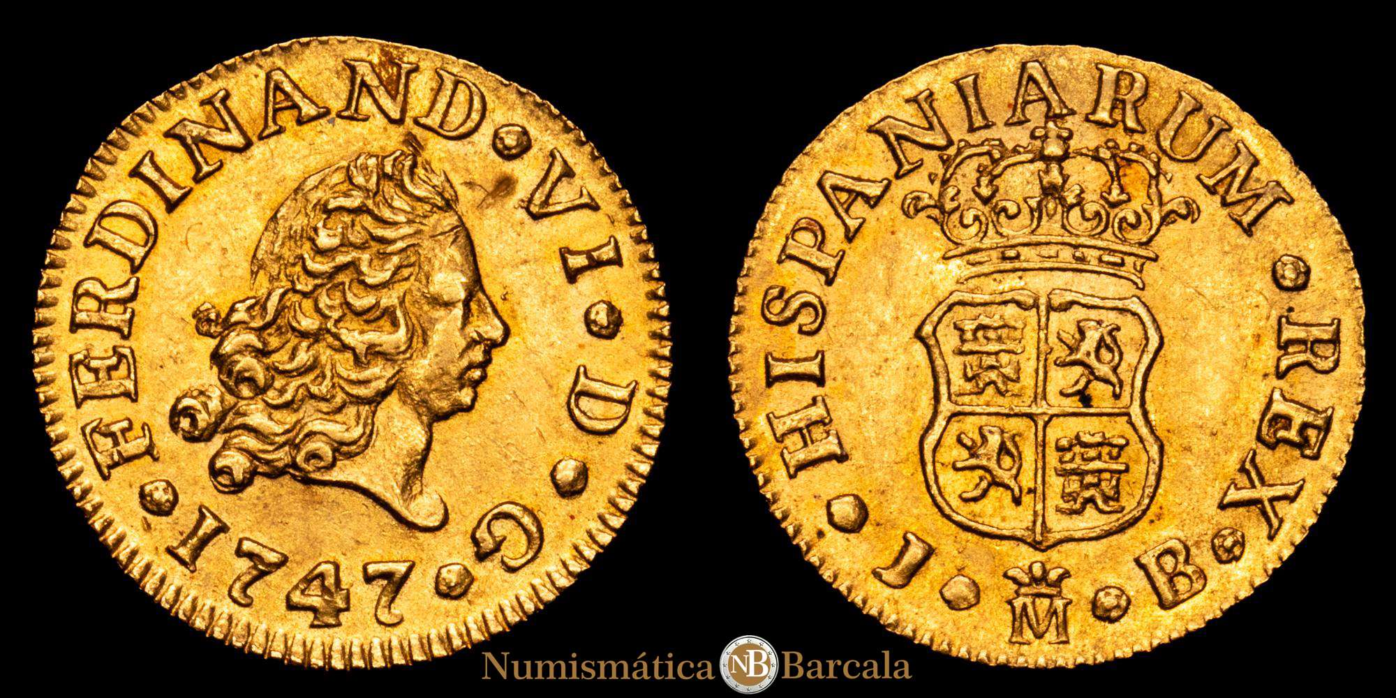 Numismática Barcala > Productos > Fernando VI (1746-1759). 1/2 escudo. Madrid. 1747. JB. AU 1,79 g. 14,4mm. VI-403; AC-548. Gran parte del brillo original. EBC.