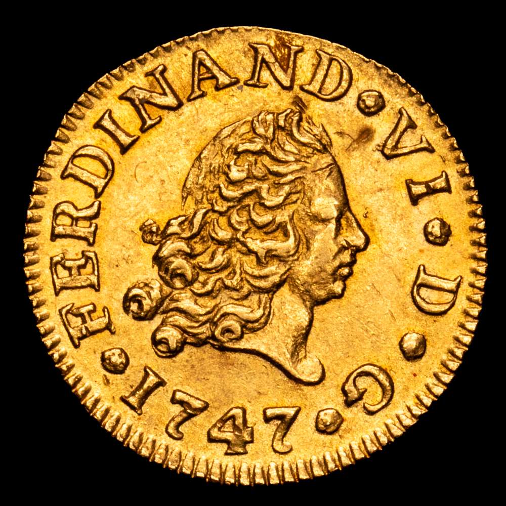Fernando VI (1746-1759). 1/2 escudo. Madrid. 1747. JB. AU 1,79 g. 14,4mm. VI-403; AC-548. Golpecito en anv. Gran parte del brillo original. EBC.