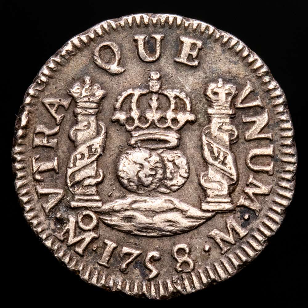 Numismática Barcala > Productos > Fernando VI (1746-1759). 1/2 real. 1758. México. M. (Cal-94). Ag. 1,61 gramos. Bonita pátina. EBC-/MBC+.