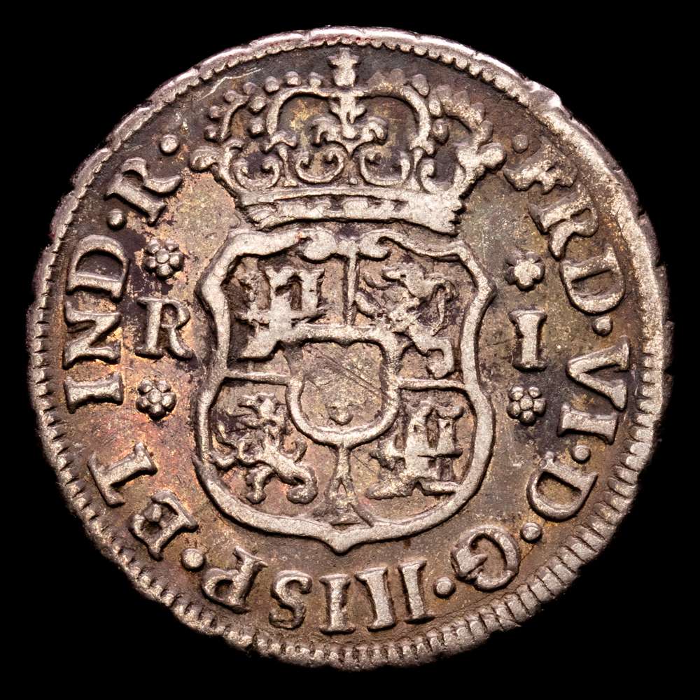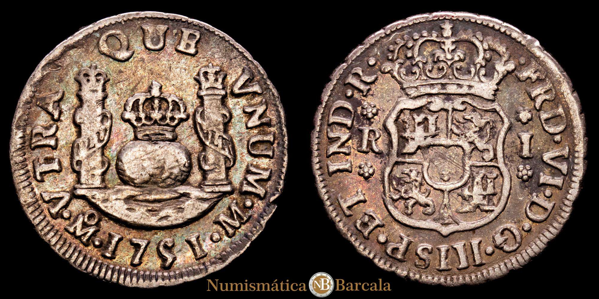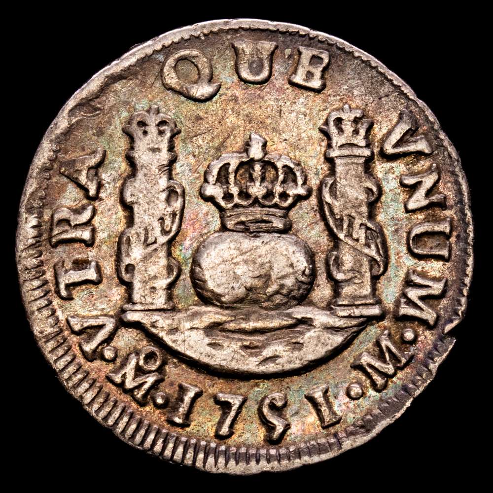 Fernando VI (1746-1759). 1 real. 1751. México. M. (Cal-190). Ag. 3,33 g. Pátina. VF+.