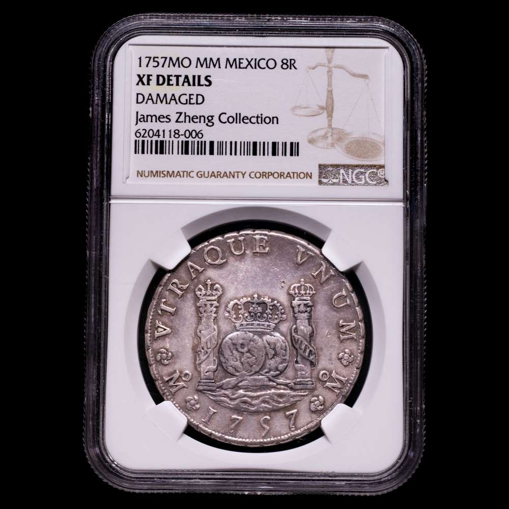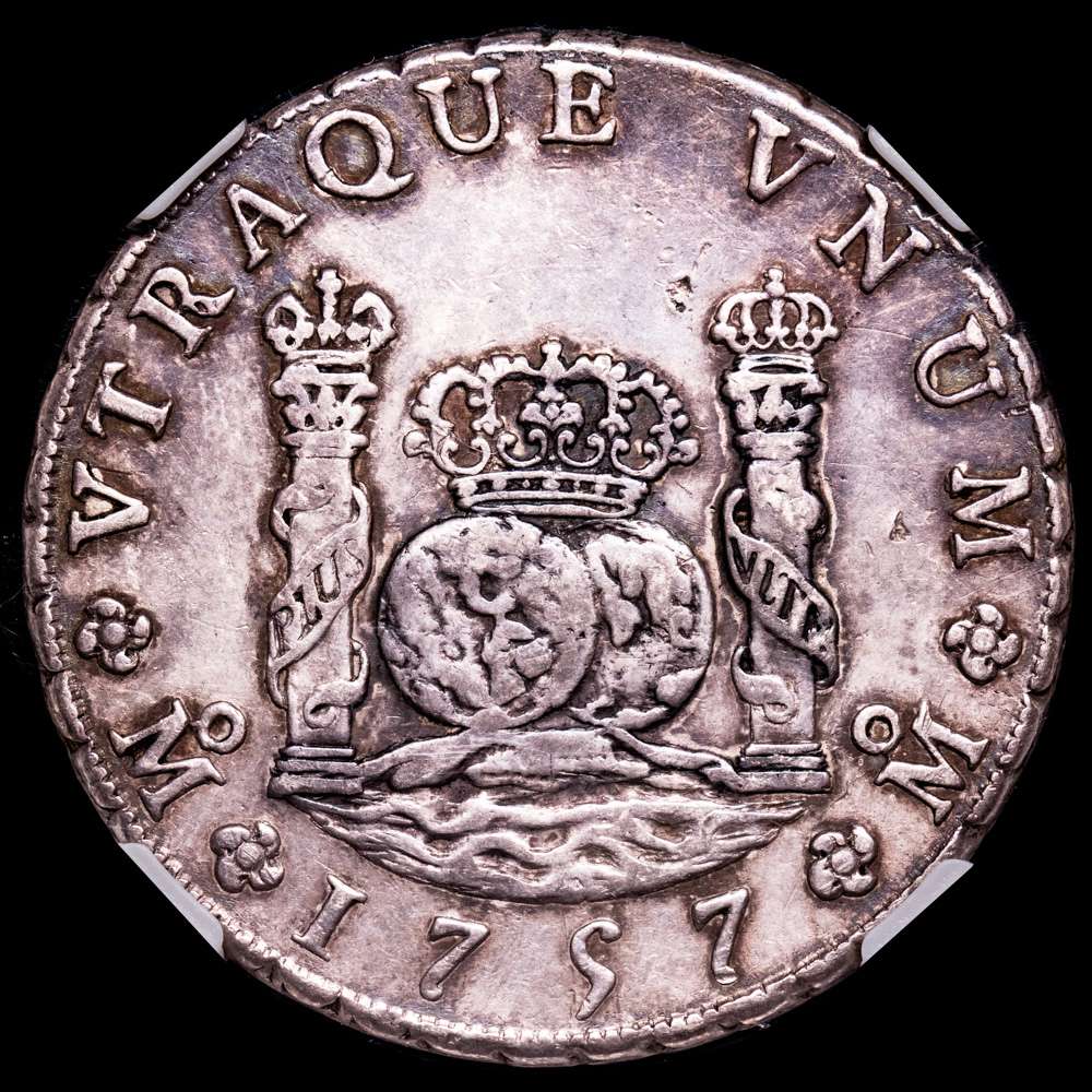 Fernando VI (1746-1759). 8 reales. 1757. México. MM. (Cal-493). Ag. Ligero tono. Encapsulada por NGC como XF Details. (James Zheng Collection).
