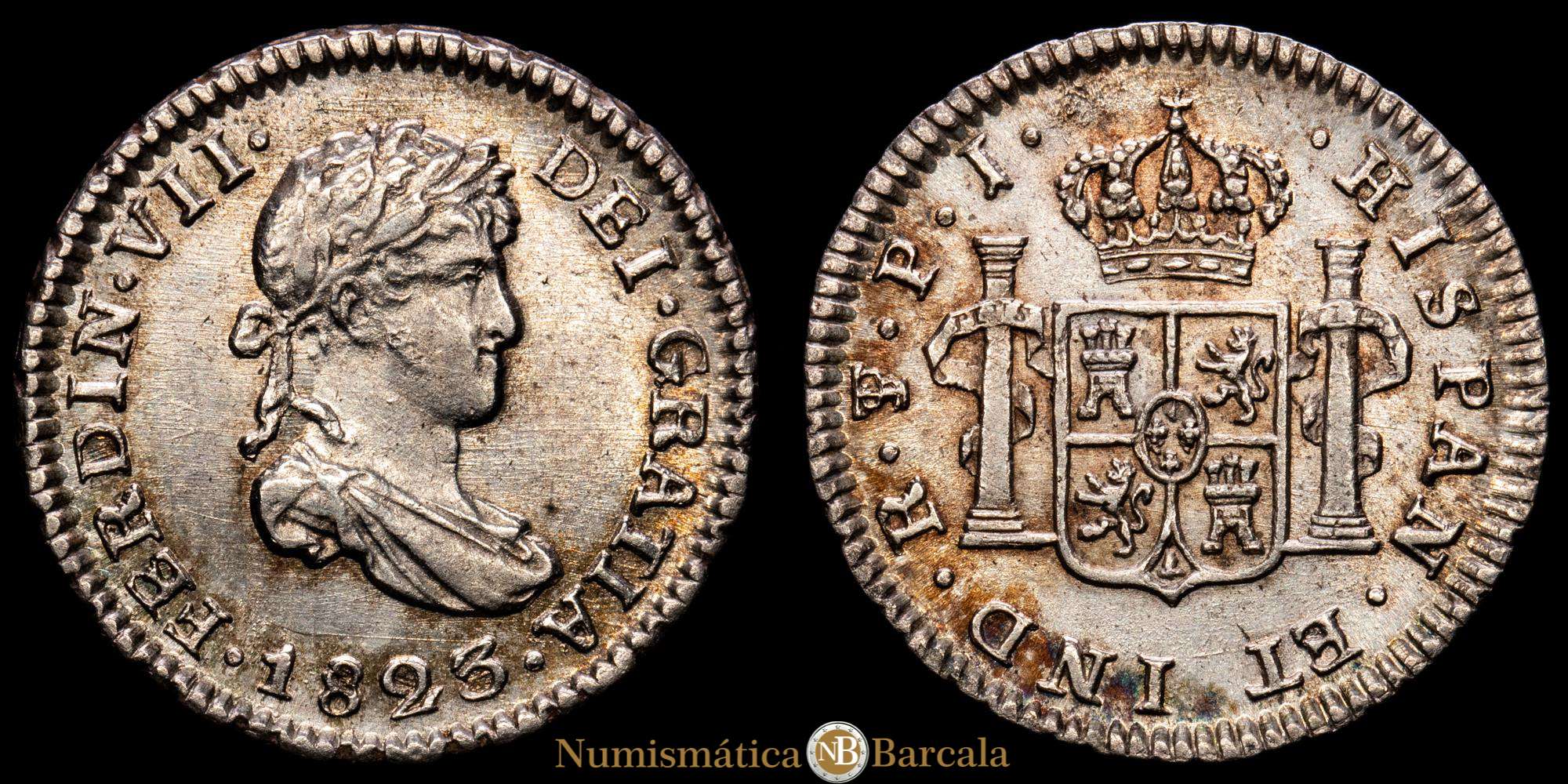 Numismática Barcala > Productos > Fernando VII. 1/2 Real. (1,66 g.). Potosí. 1823. P·J. AC-438. EBC. Pátina y brillo