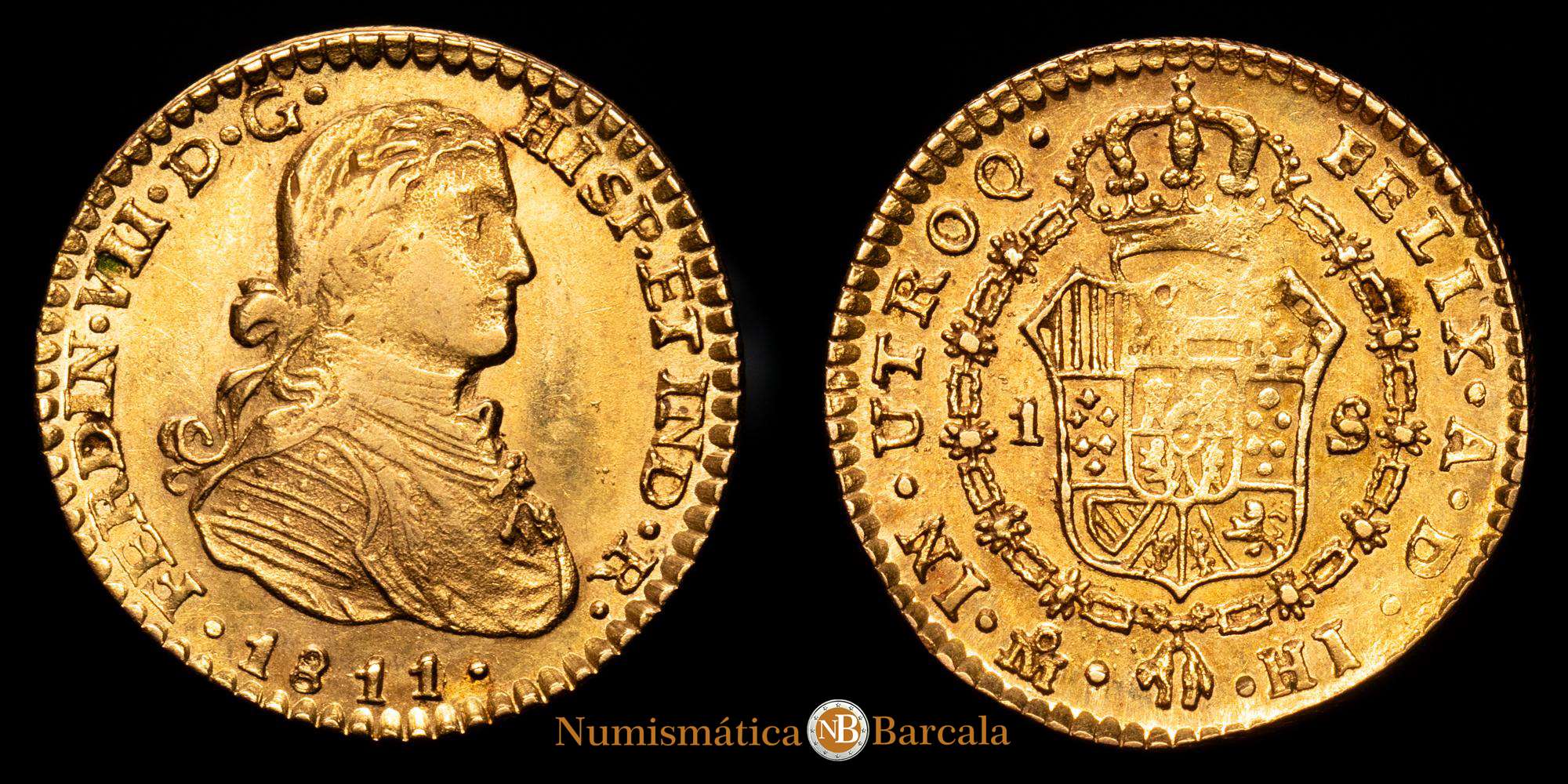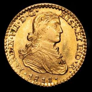 Numismática Barcala > Productos > Fernando VII. 1 Escudo. (3,38 g.). México. 1811/0. H·J. (AC-1512). EBC. Brillo original. Rara. Busto imaginario.