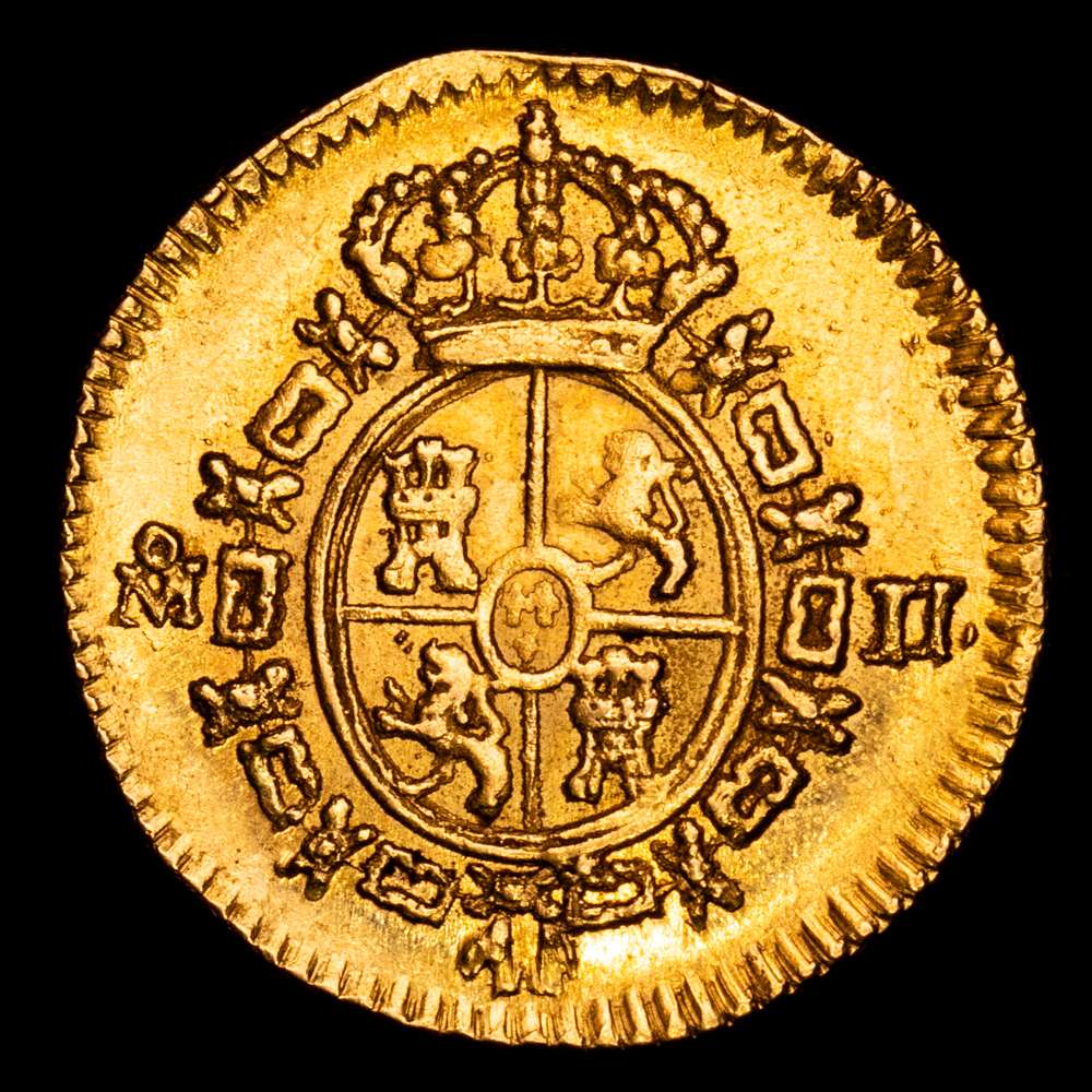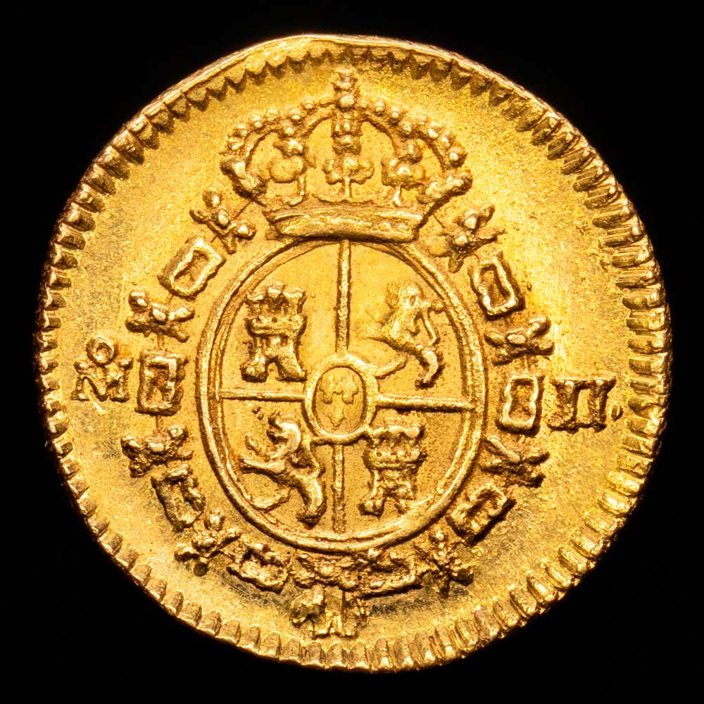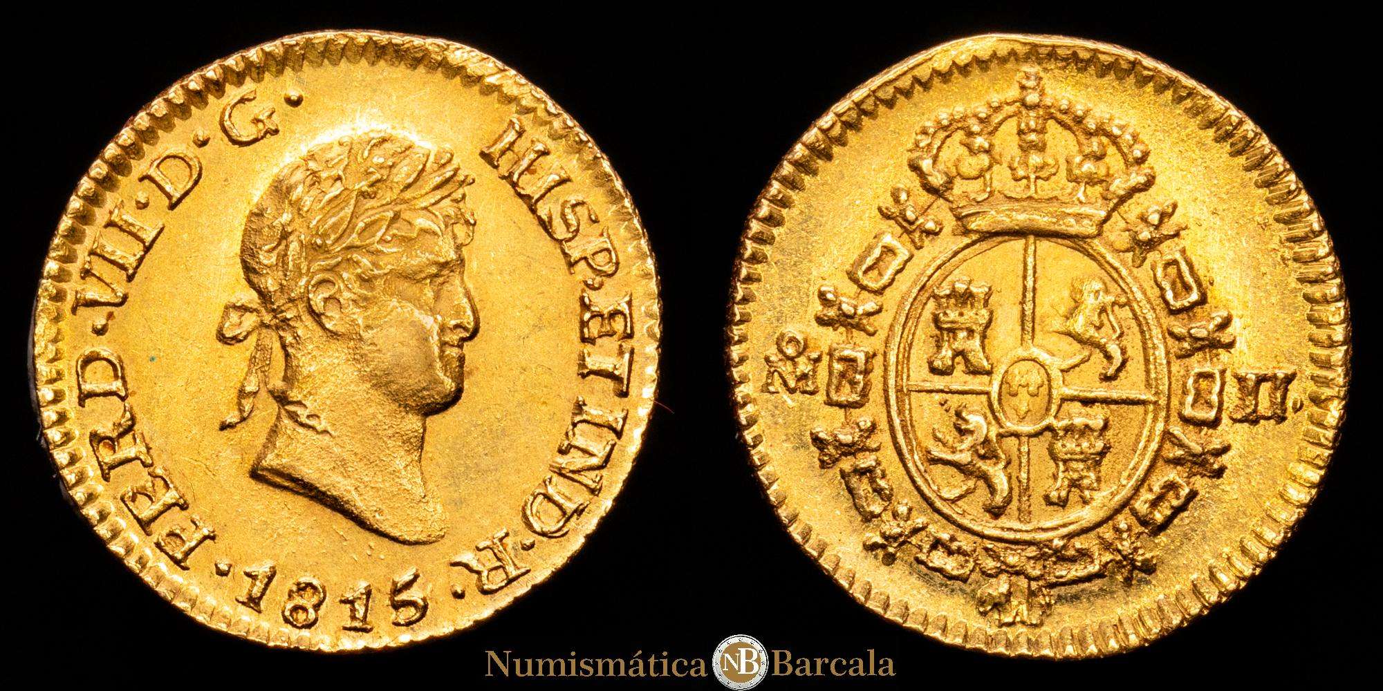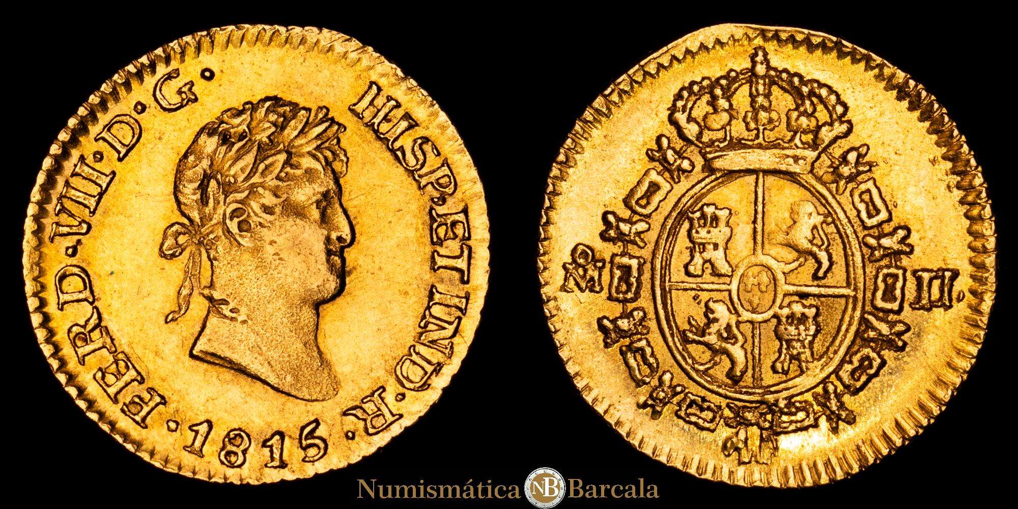 Numismática Barcala > Productos > Fernando VII (1808-1833). 1/2 escudo. 1815/4. México. J.J. (Cal-1489). Au. 1,70 gramos. Sobrefecha. Gran parte de brillo originales. Rara en esta conservación. EBC+.