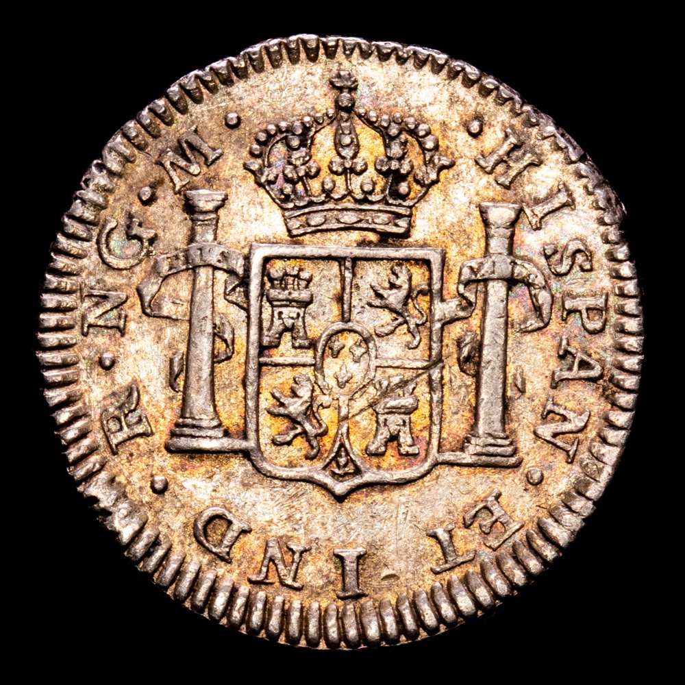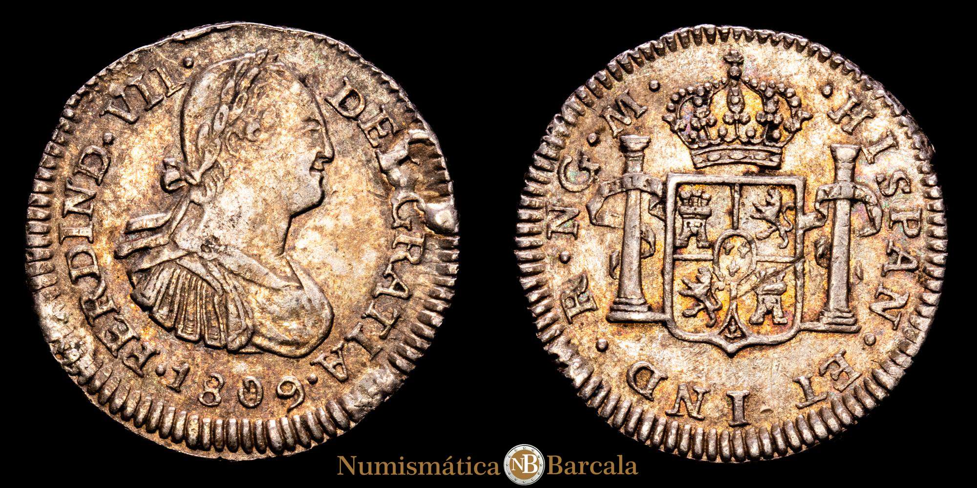 Fernando VII (1808-1833). 1/2 real. 1809. Guatemala. M. (Cal-329). Ag. 1,71 gramos. Precioso color. (EBC-). Rara.