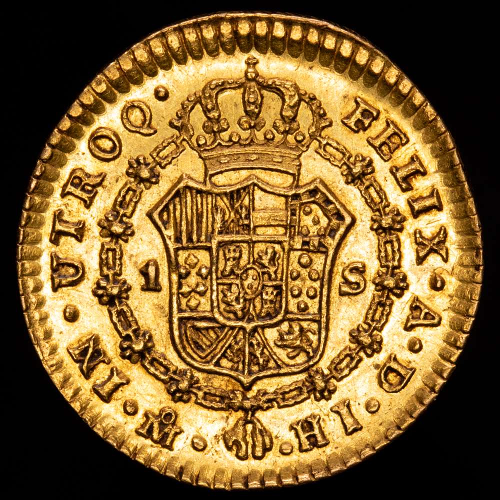 Difícil de adquirir en altos grados de conservación, buen brillo, destacable acuñación, finos detalles, curiosa pérdida de diseño en la frente del Rey.