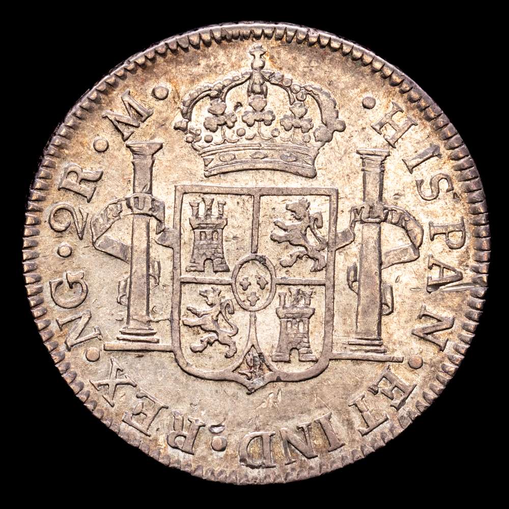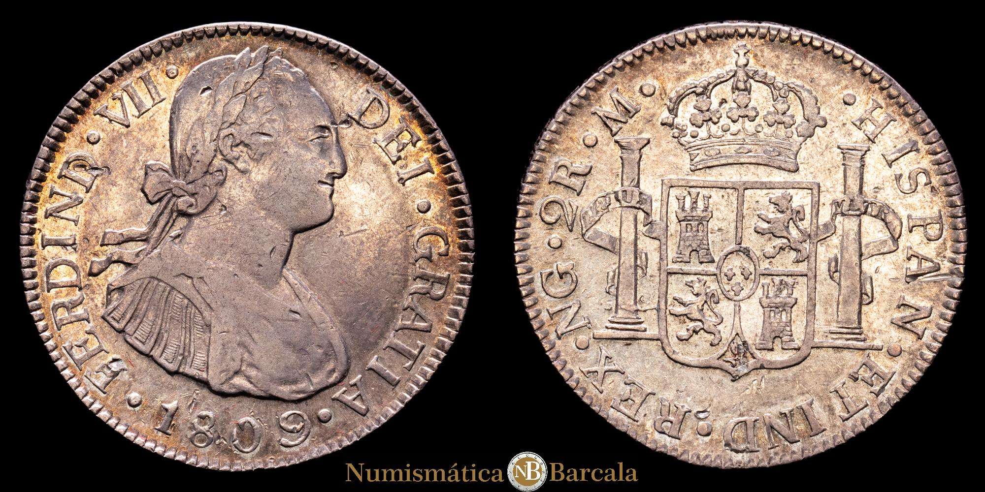 Fernando VII (1808-1833). 2 reales. 1809. Guatemala. M. (Cal-791). Ag. 6,49 gramos. Busto de Carlos IV. Pequeñas marcas. Pátina. Rara. VF+.