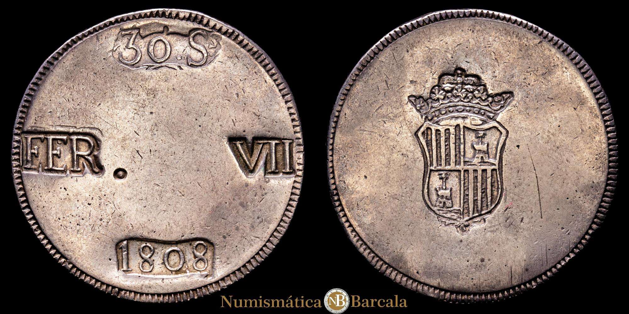 Fernando VII (1808-1833). 30 sous. 1808. Mallorca. (Cal-1290). Ag. 26,33 g. MBC+.