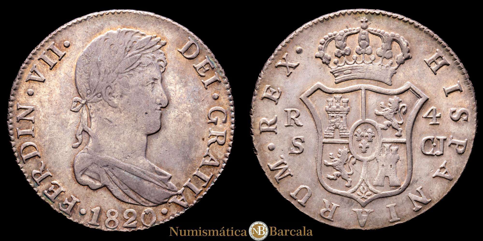 Numismática Barcala > Productos > Fernando VII (1808-1833) 4 reales. 1820. Sevilla. CJ. (AC. 1127). Ag. 13,18 g. Escasa. MBC/MBC+. Escasa.