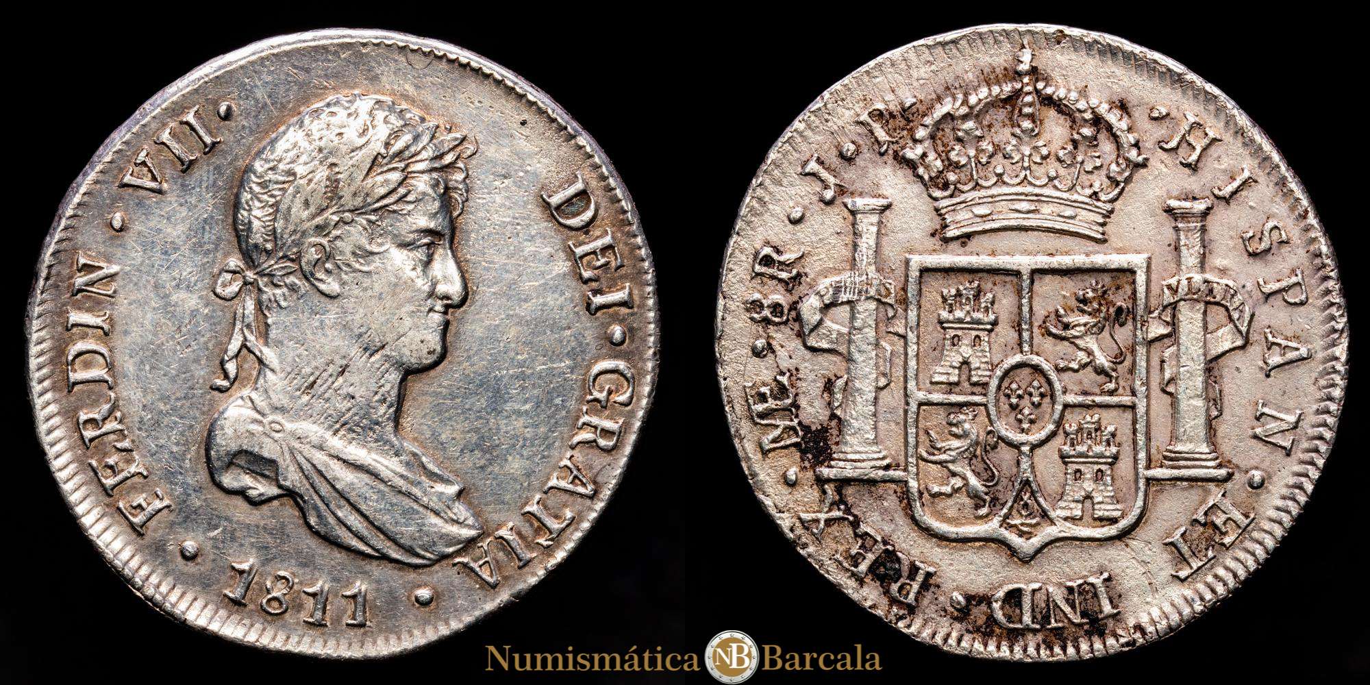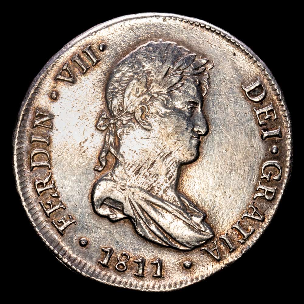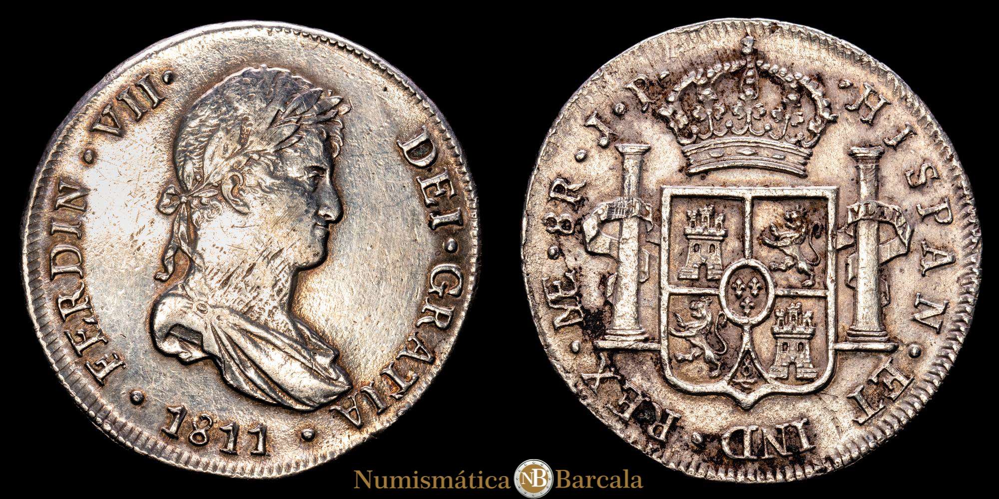 Fernando VII (1808-1833). 8 reales. 1811. Lima. J.P. (Cal-1243). Ag. 27,00 gramos. Primer año de busto propio. (EBC-).