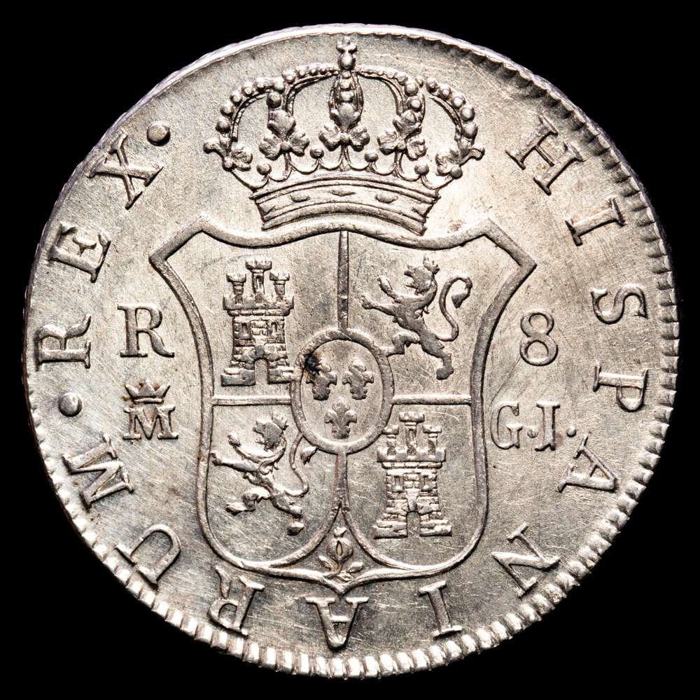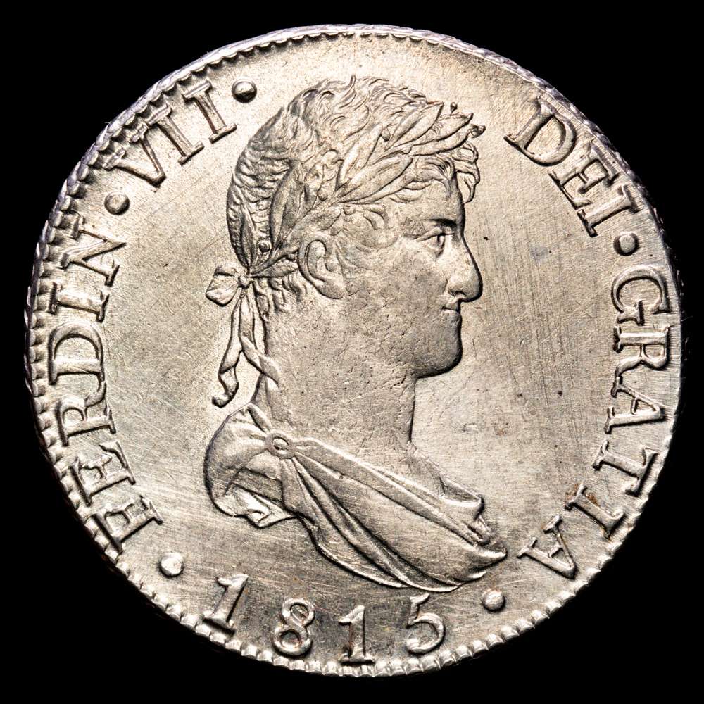 Numismática Barcala > Productos > Fernando VII (1808-1833). 8 reales. 1815. Madrid. GJ. (Cal-1269). Ag. 27,20 g. Restos de brillo original. Escasa así. EBC
