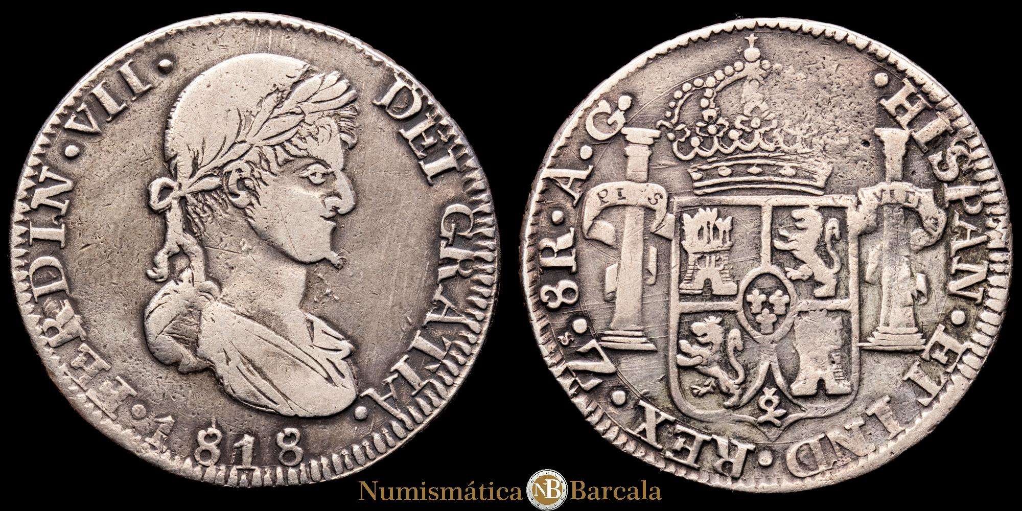 Numismática Barcala > Productos > Fernando VII (1808-1833). 8 reales. 1818. Zacatecas. AG. (Cal-1459). Ag. 25,74 gramos. Buen ejemplar para esta ceca. VF.