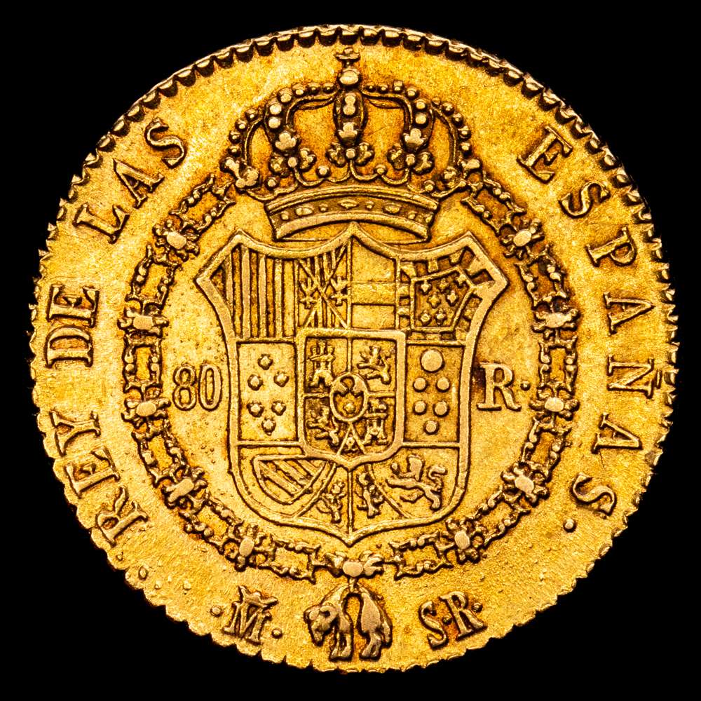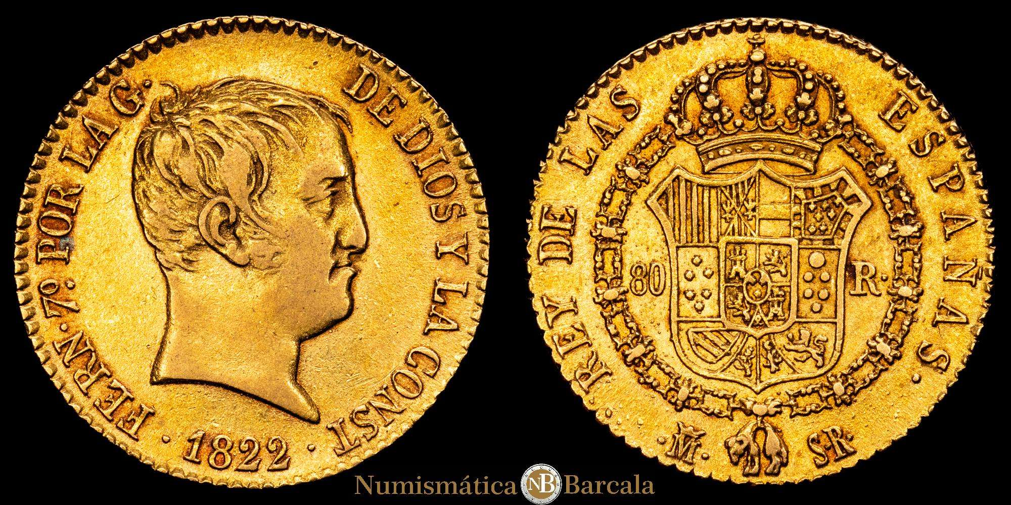Numismática Barcala > Productos > Fernando VII (1808-1833). 80 reales. 1822. Madrid. SR. (Cal-1641). Au. 6,75 g. Tipo “cabezón”. MBC+, restos de brillo original.