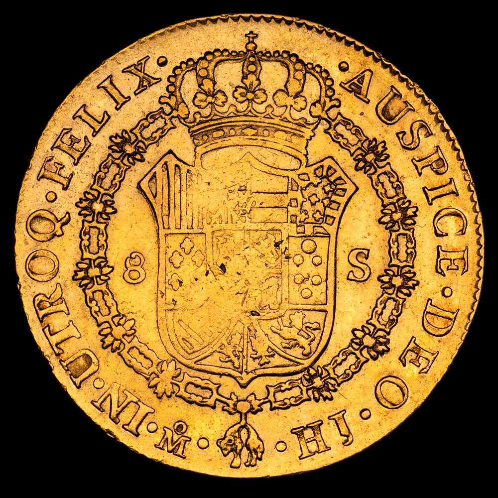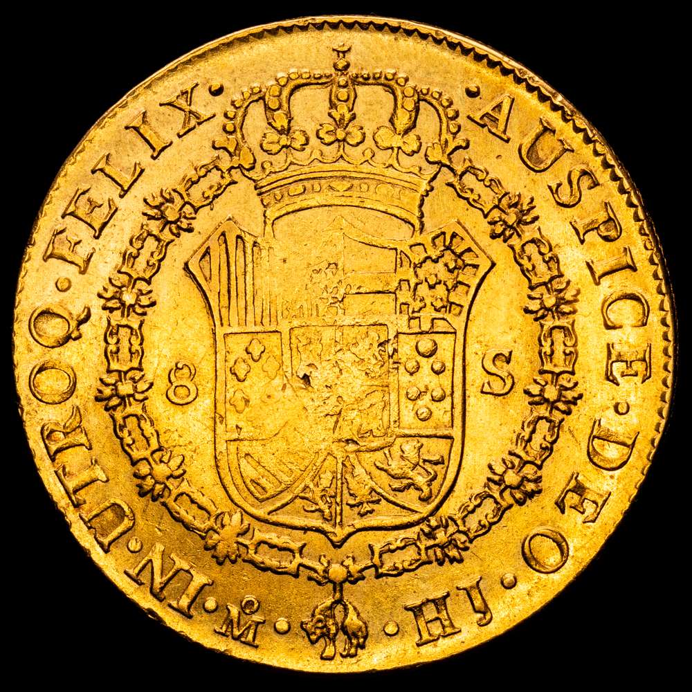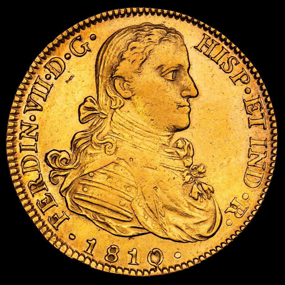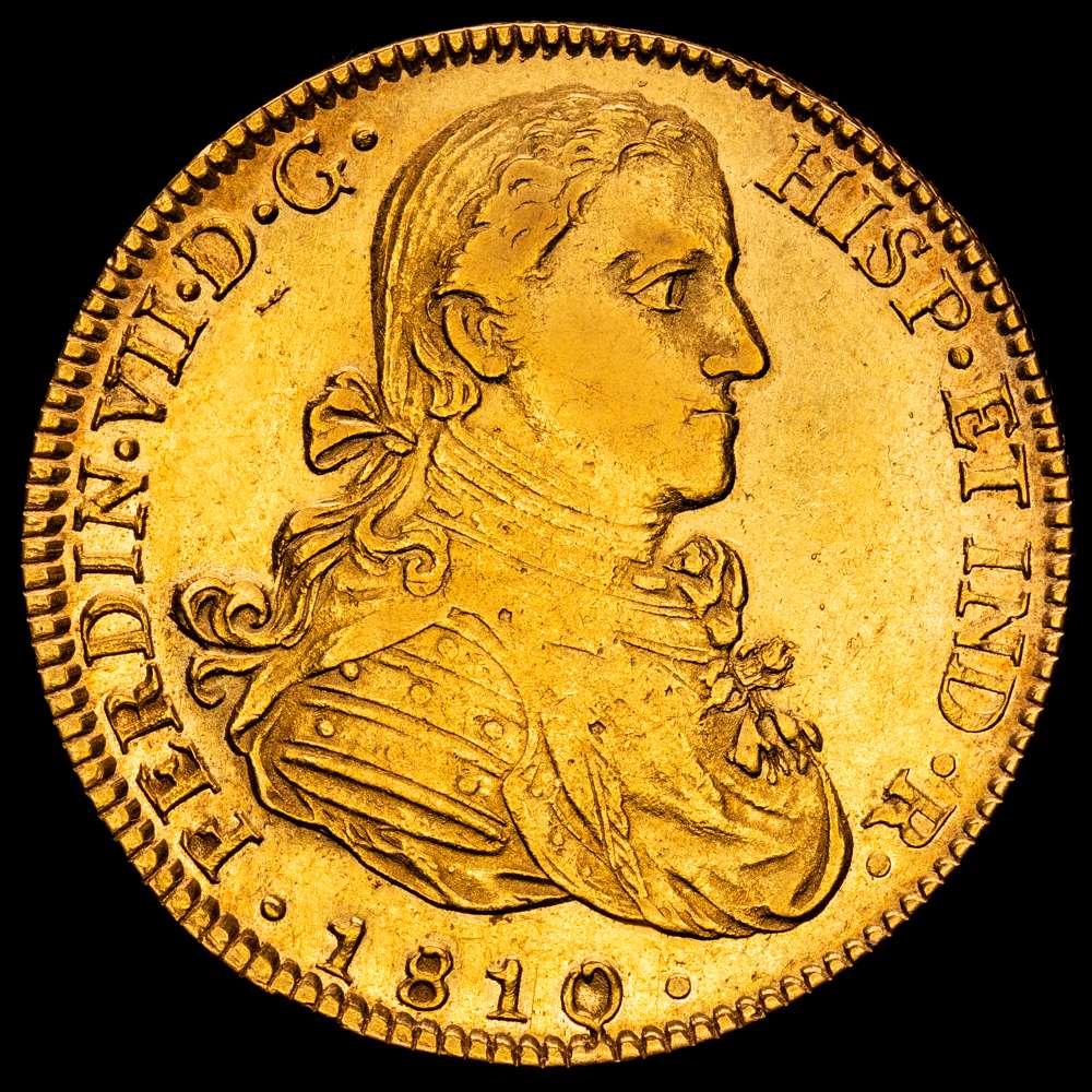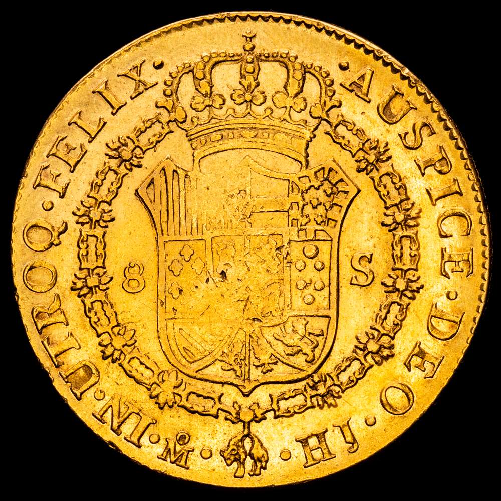 Fernando VII. 1810 México. HJ. 8 escudos. (AC. 1783) (Cal.Onza 1254). Busto imaginario. Acuñación algo floja. 27,01 g. MBC+.