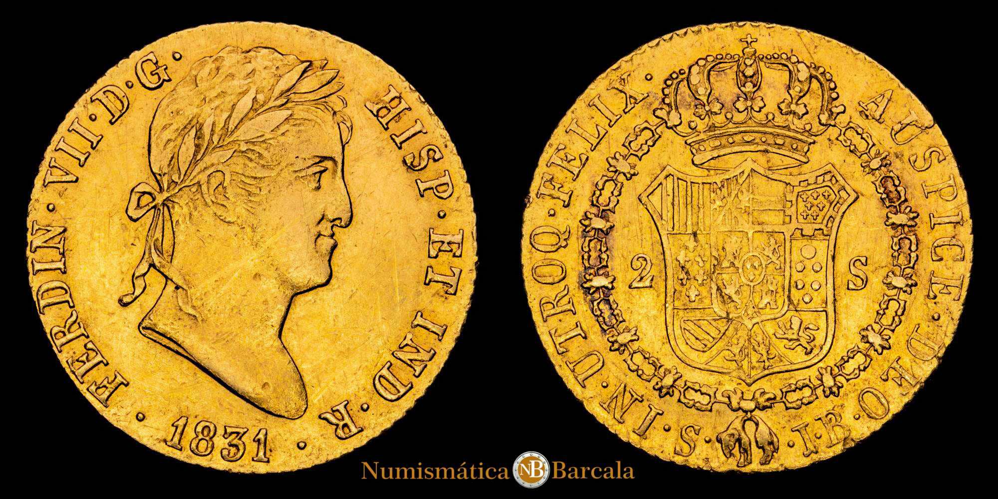 Fernando VII. 1831. Sevilla. JB. 2 escudos. (AC. 1689). 6,78 gramos. Leves rayitas. Buen ejemplar. MBC+.