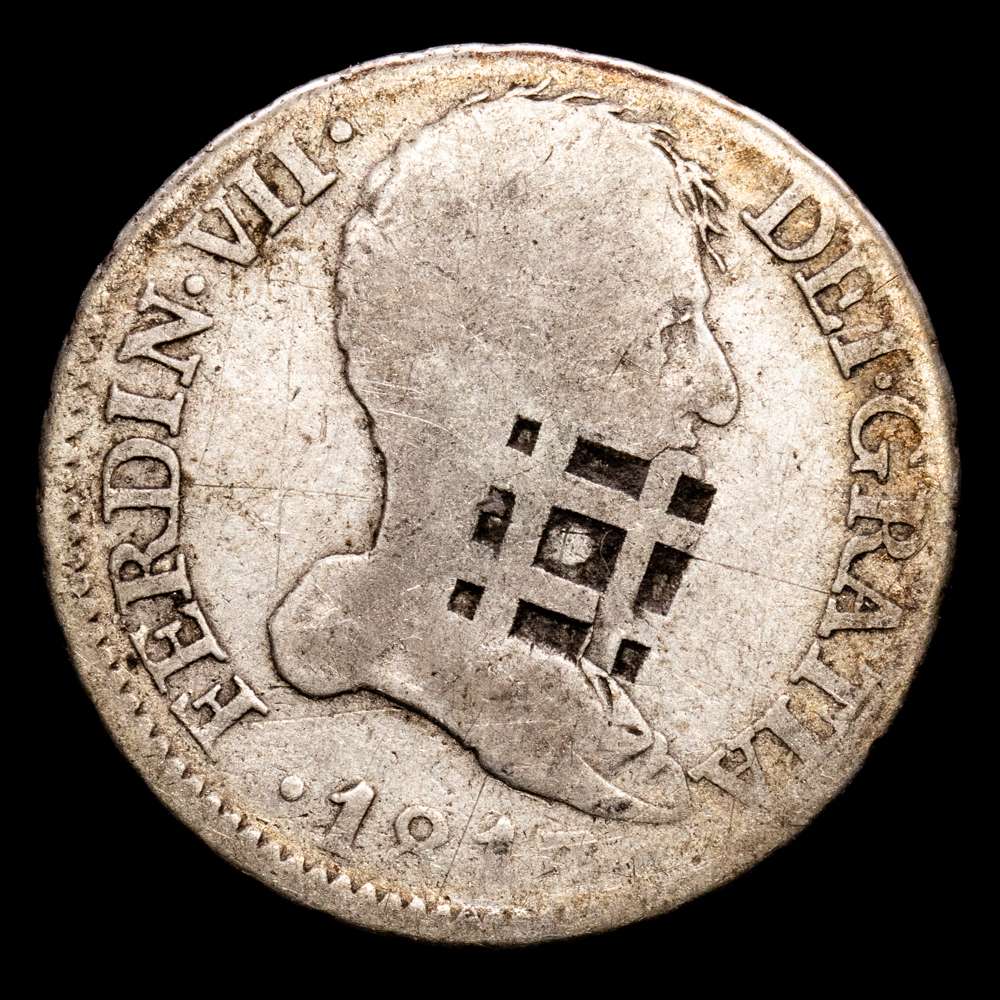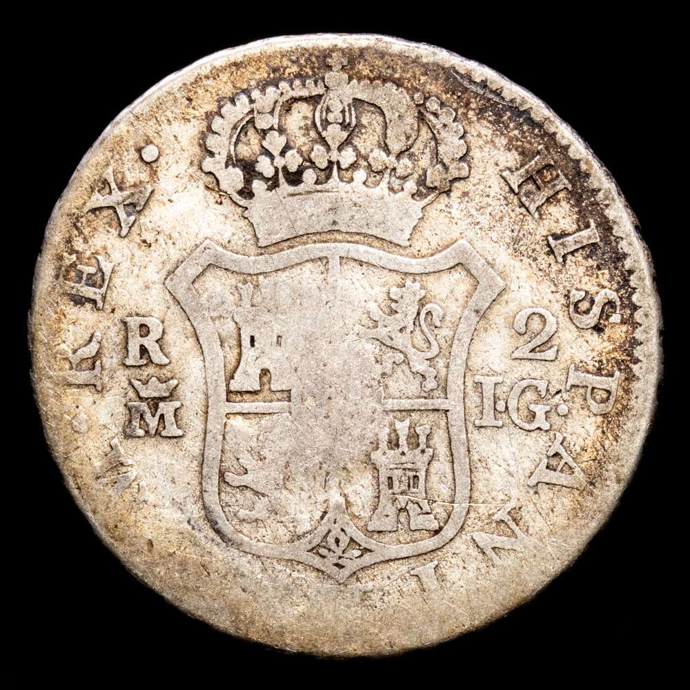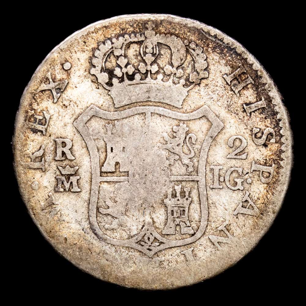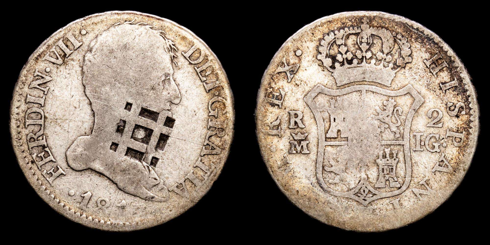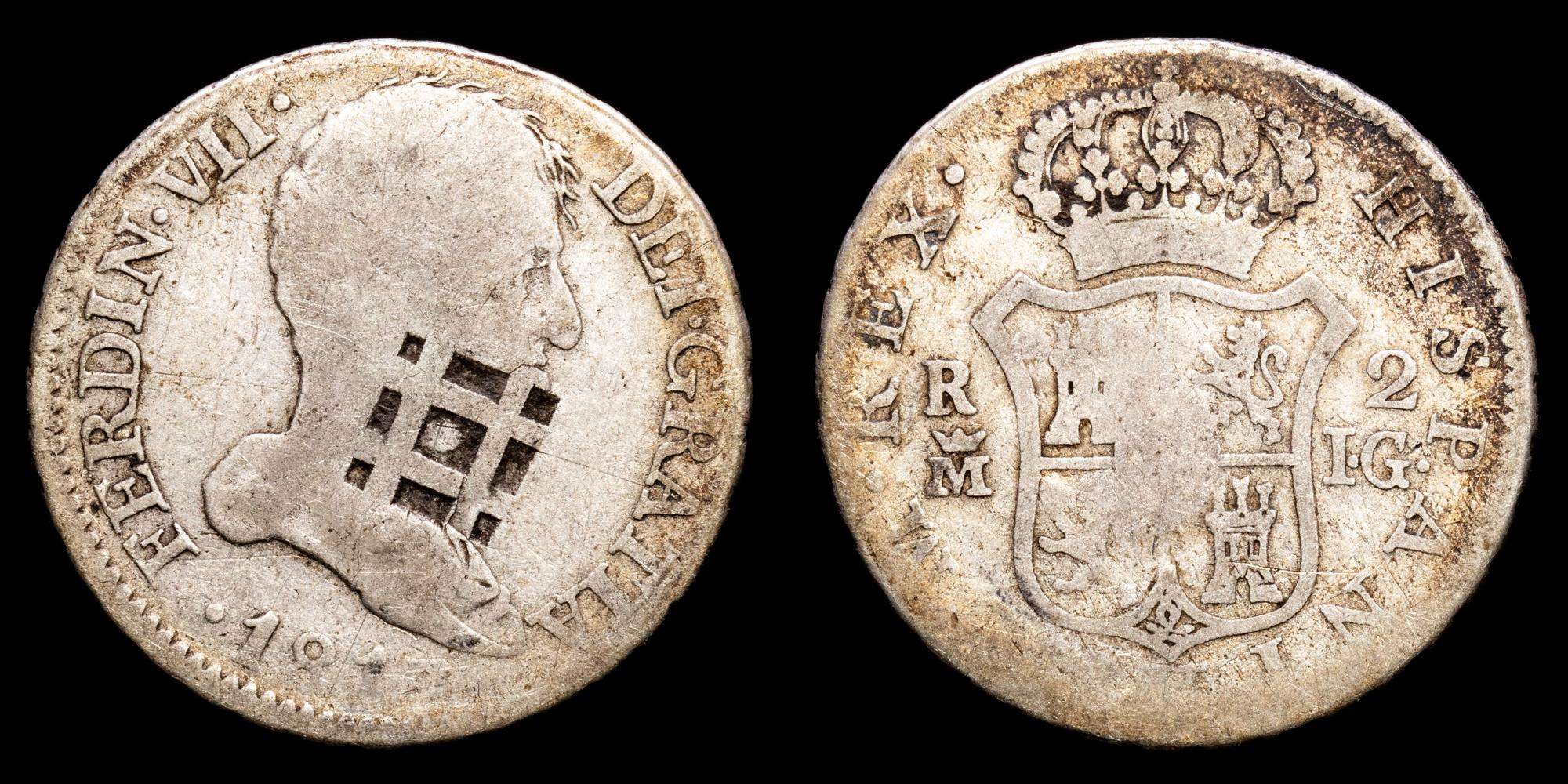 Numismática Barcala > Productos > Fernando VII. 2 Reales. (5,54 g.). Madrid. 1813. I·J. AC-824. MBC-. Resello vique. Escasa