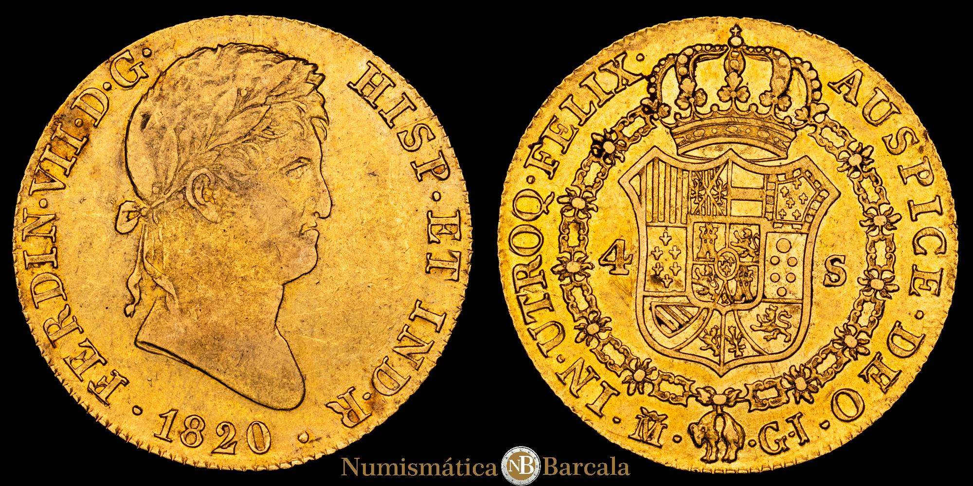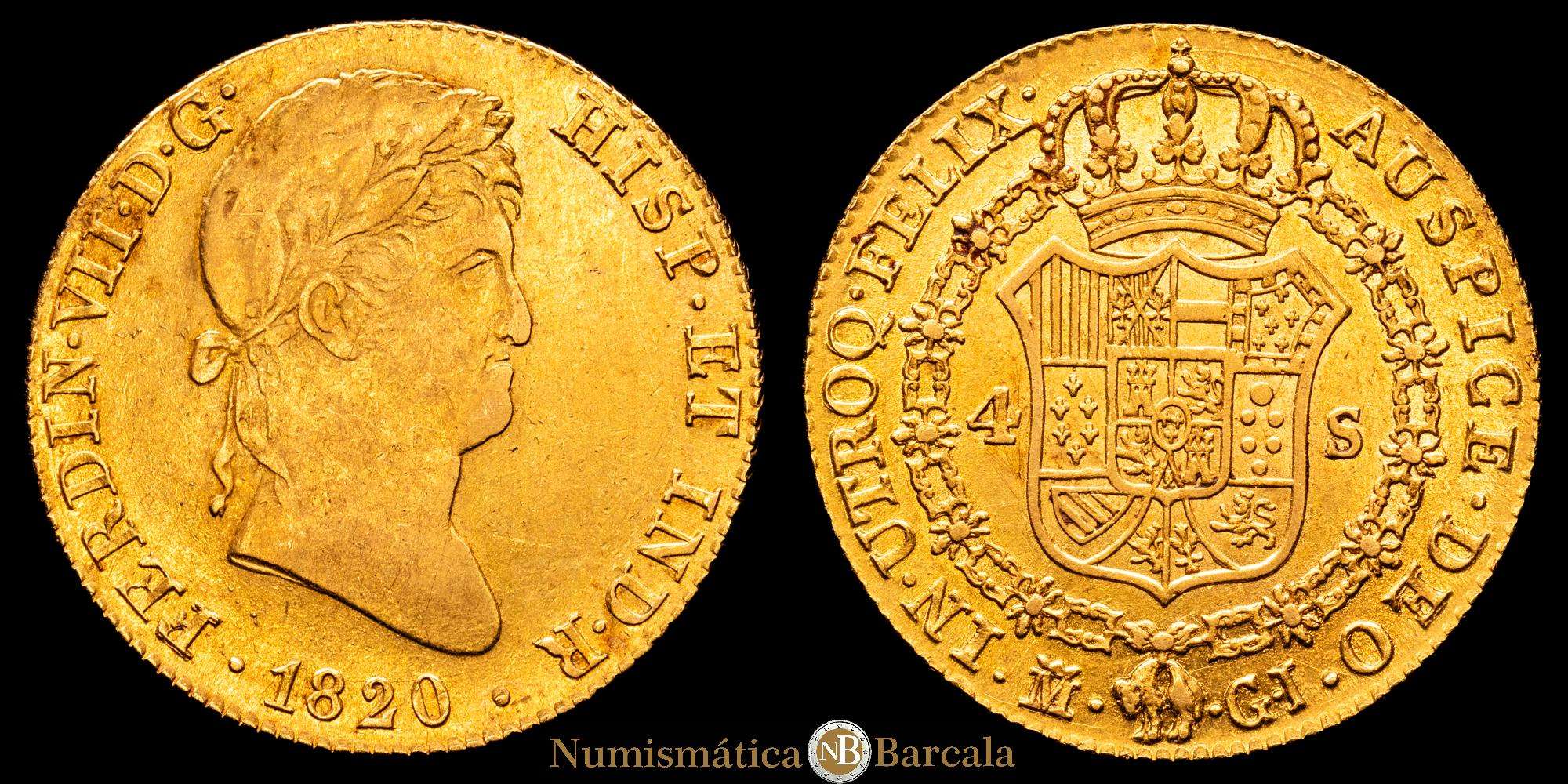 Numismática Barcala > Productos > Fernando VII. 4 Escudos. (13,43 g.). Madrid. 1820. G·J. (AC. 1716). Parte del brillo original. EBC-.